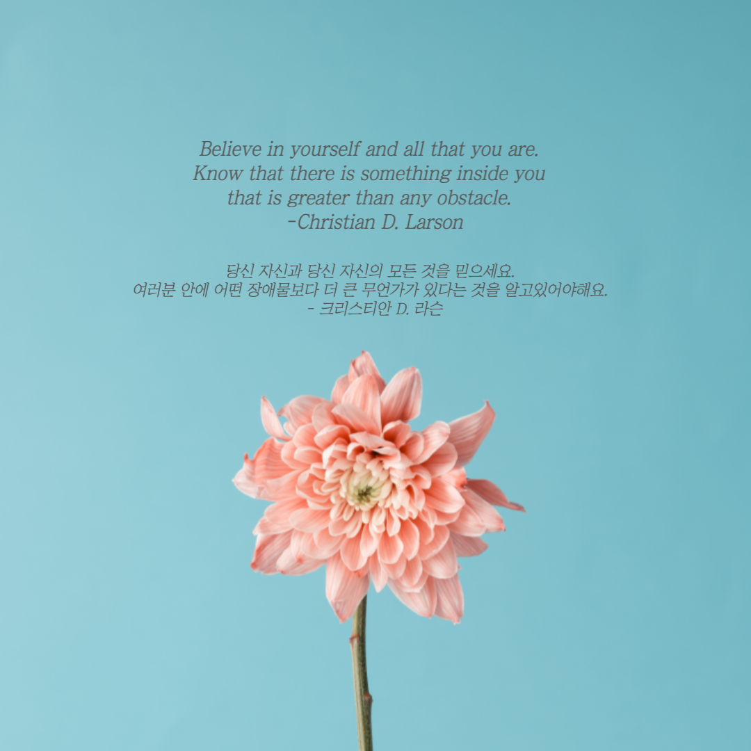 당신 자신과 당신 자신의 모든 것을 믿으세요. 여러분 안에 어떤 장애물보다 더 큰 무언가가 있다는 것을 알아야해요. - 크리스티안 D. 라슨