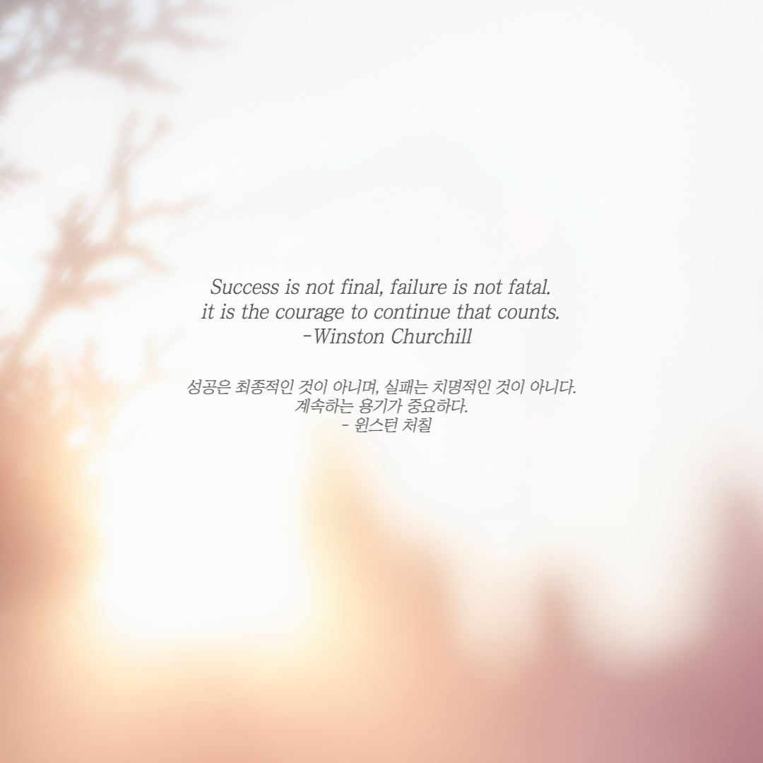 성공은 최종적인 것이 아니며, 실패는 치명적인 것이 아니다. 계속하는 용기가 중요하다. - 윈스턴 처칠