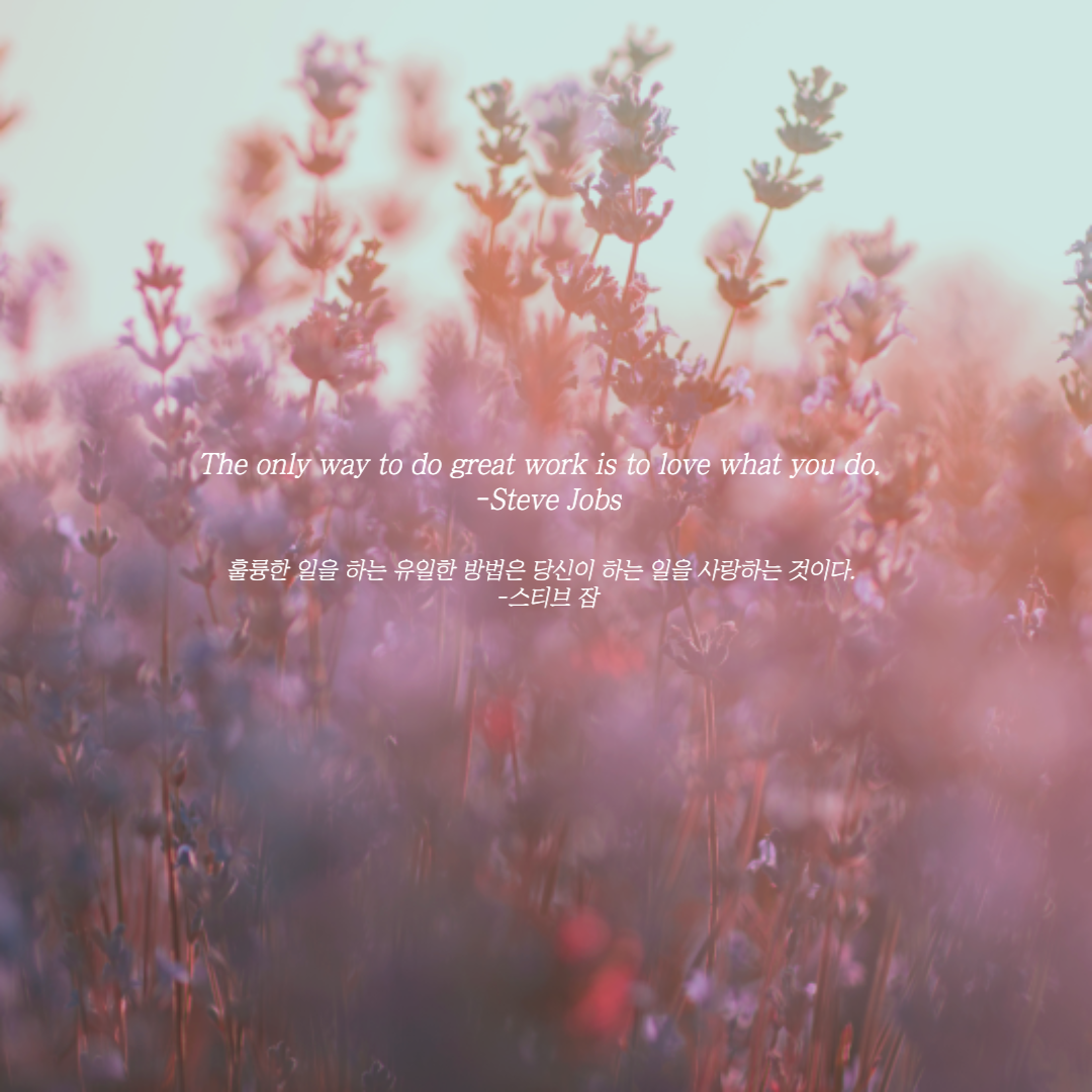 훌륭한 일을 하는 유일한 방법은 당신이 하는 일을 사랑하는 것이다. -스티브 잡스