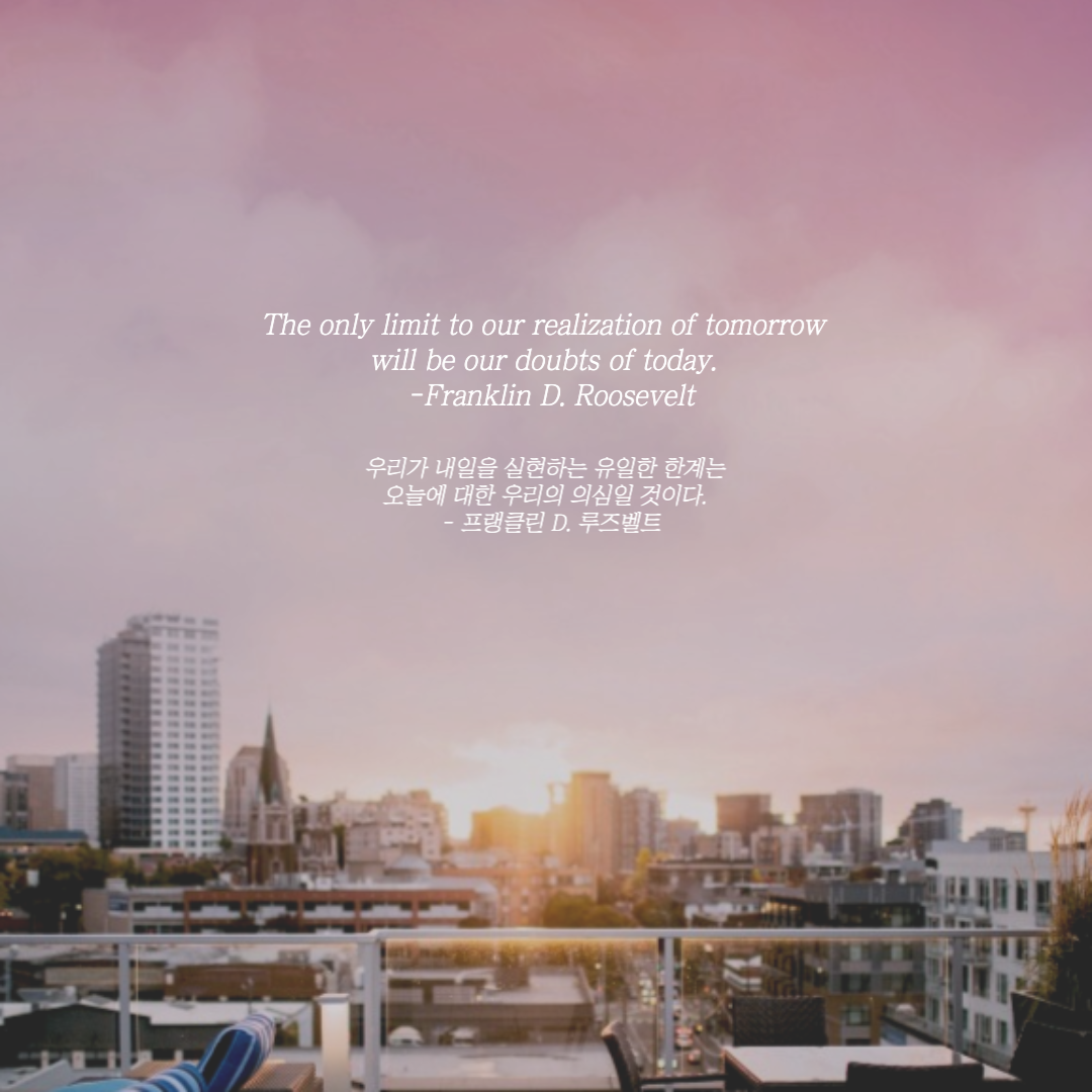 우리가 내일을 실현하는 유일한 한계는 오늘에 대한 우리의 의심일 것이다. - 프랭클린 D. 루즈벨트