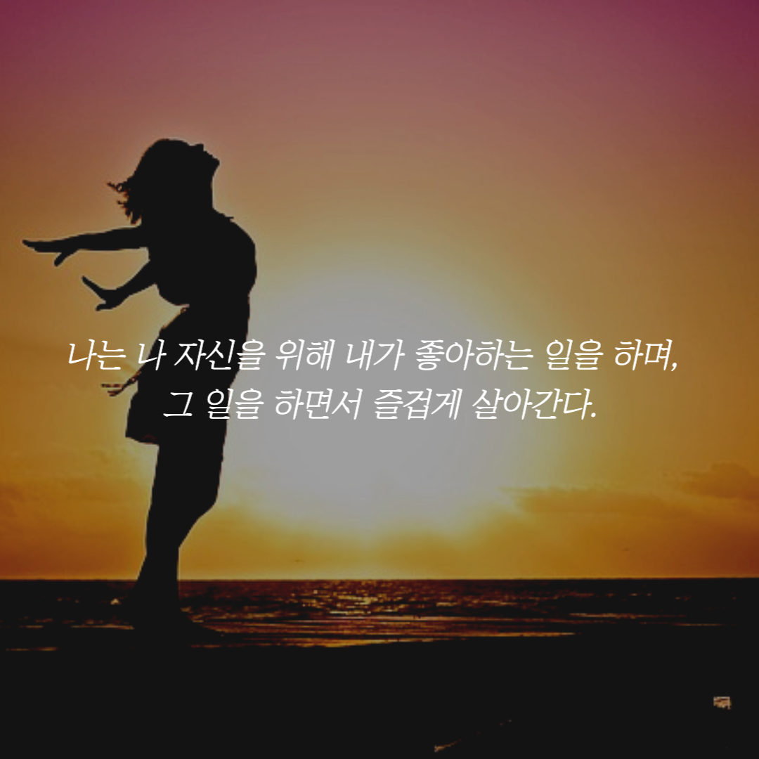 1. 나는 내 인생의 주인공이다. 내가 하고 싶은 일을 하며, 내가 원하는 삶을 살아간다.