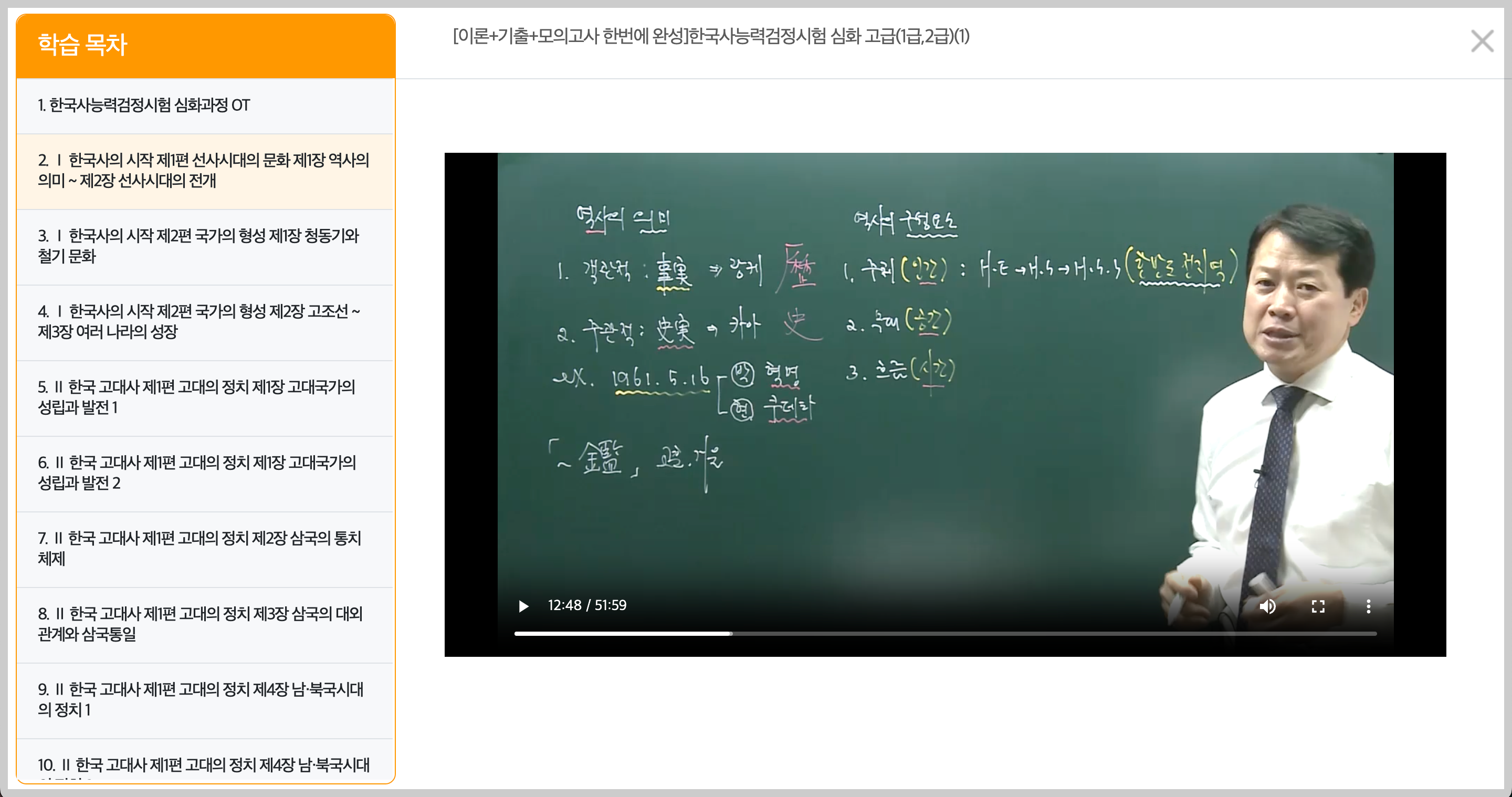 ▼ 아래와 같이 강좌를 누르면 한국사능력검정시험 강좌를 무료로 수강할 수 있다.