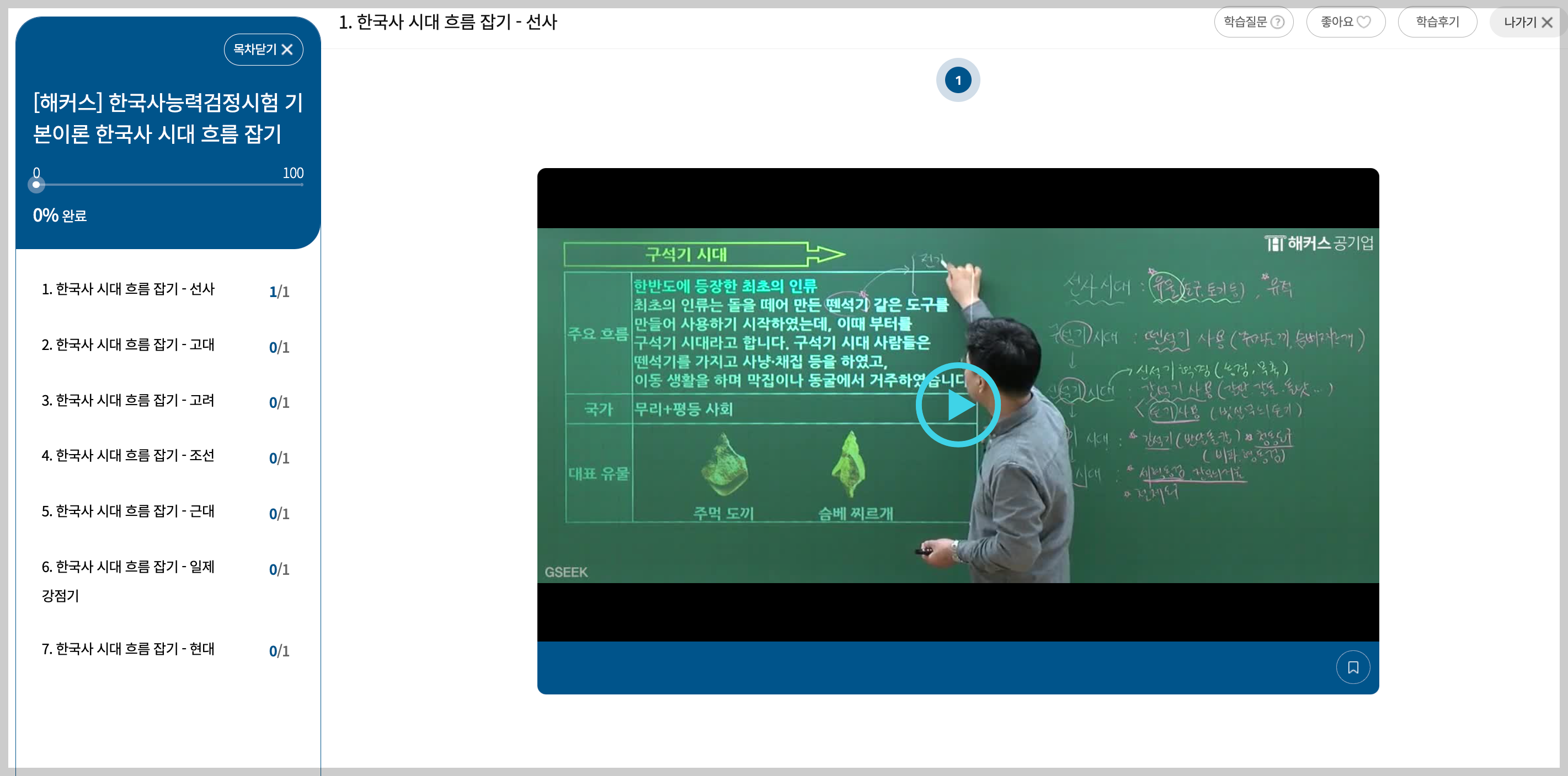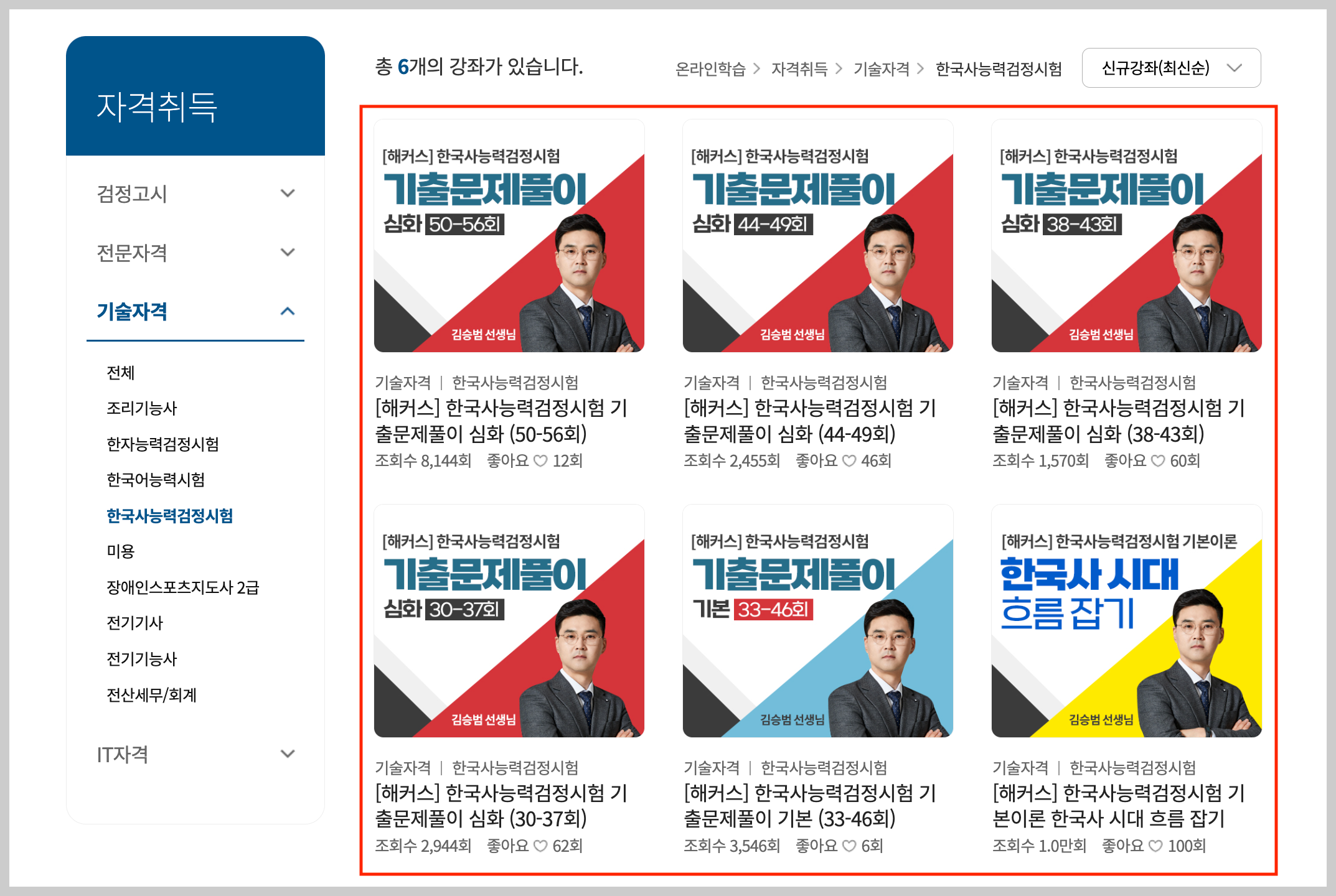 ▼ 아래와 같이 한국사능력검정시험에 관련 된 6개의 강의를 무료로 들을 수 있다.
