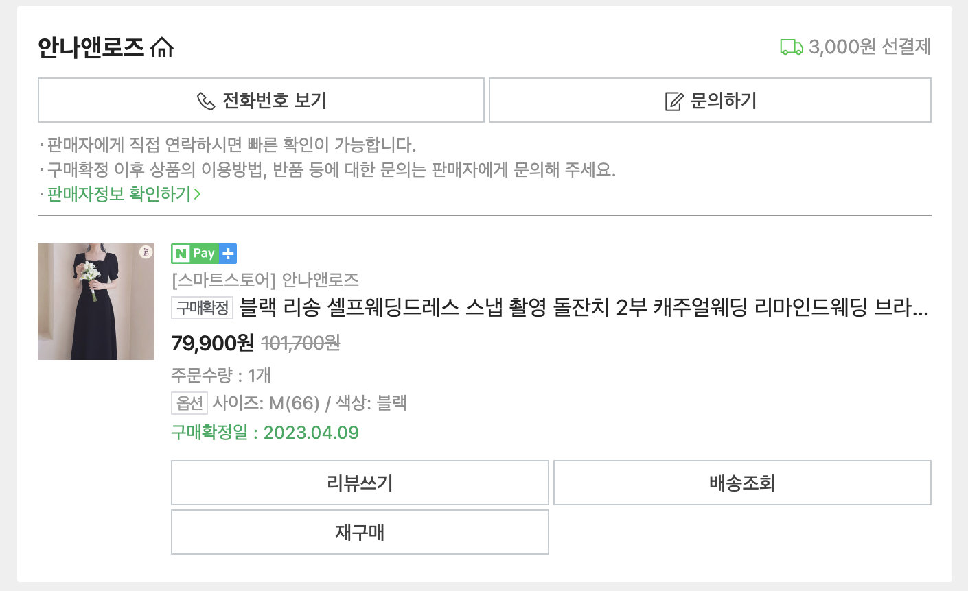 원피스는 79,900원 배송비 3,000원을 더해 총 82,900원이 들었다.