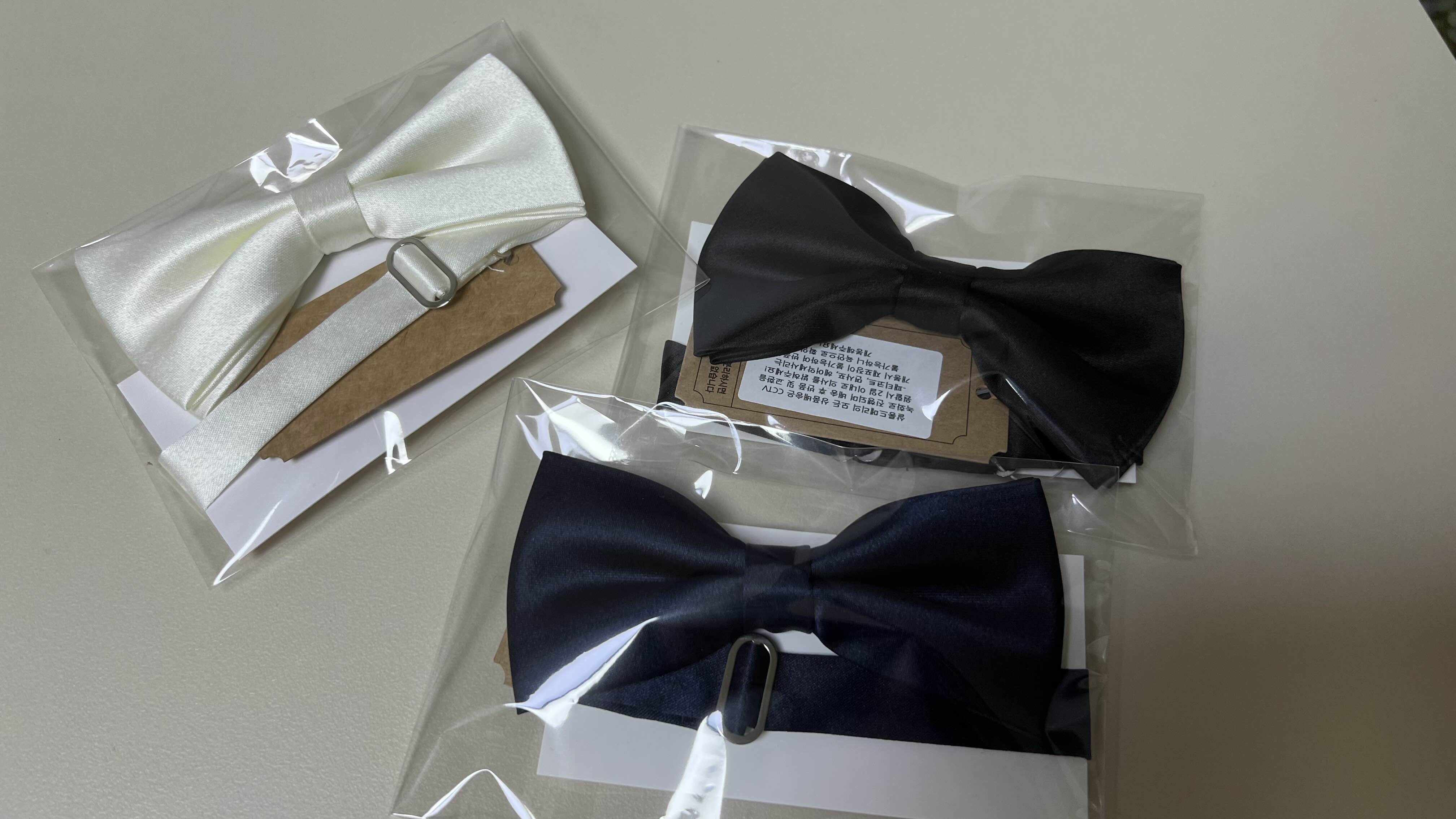 신랑 보타이는 총 3가지 색상을 구매했고, 베일을 구매하면서 동시에 구매했다. 1개에 3,000원이었기 때문에 뭔가 저렴하게 느껴져서 3가지 색상을 구매했는데, 결론적으로 검은색과 남색만 사용하고 흰색을 사용하지 않았다. (검은색 셔츠에 흰색 보타이를 하고 찍었어도 예뻤을 것 같다는 생각)
