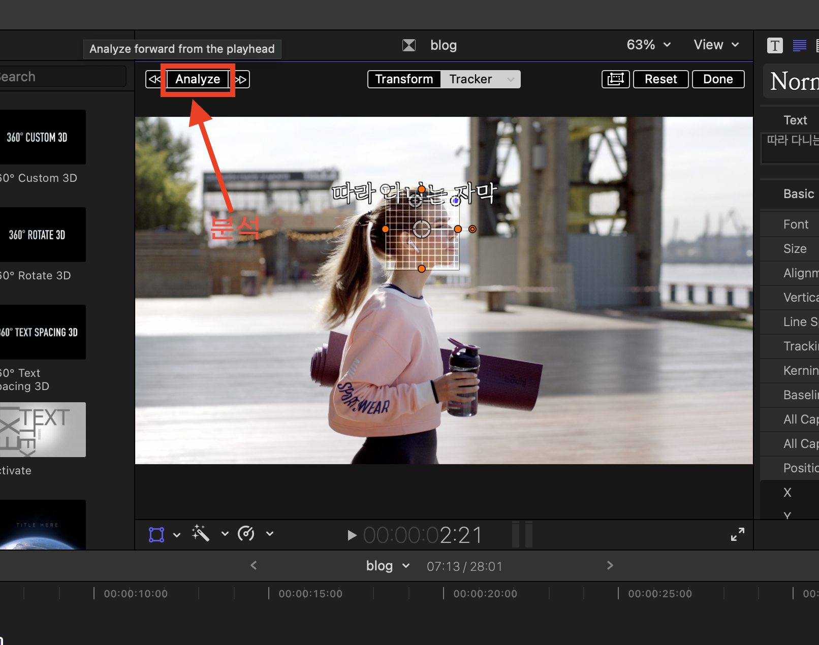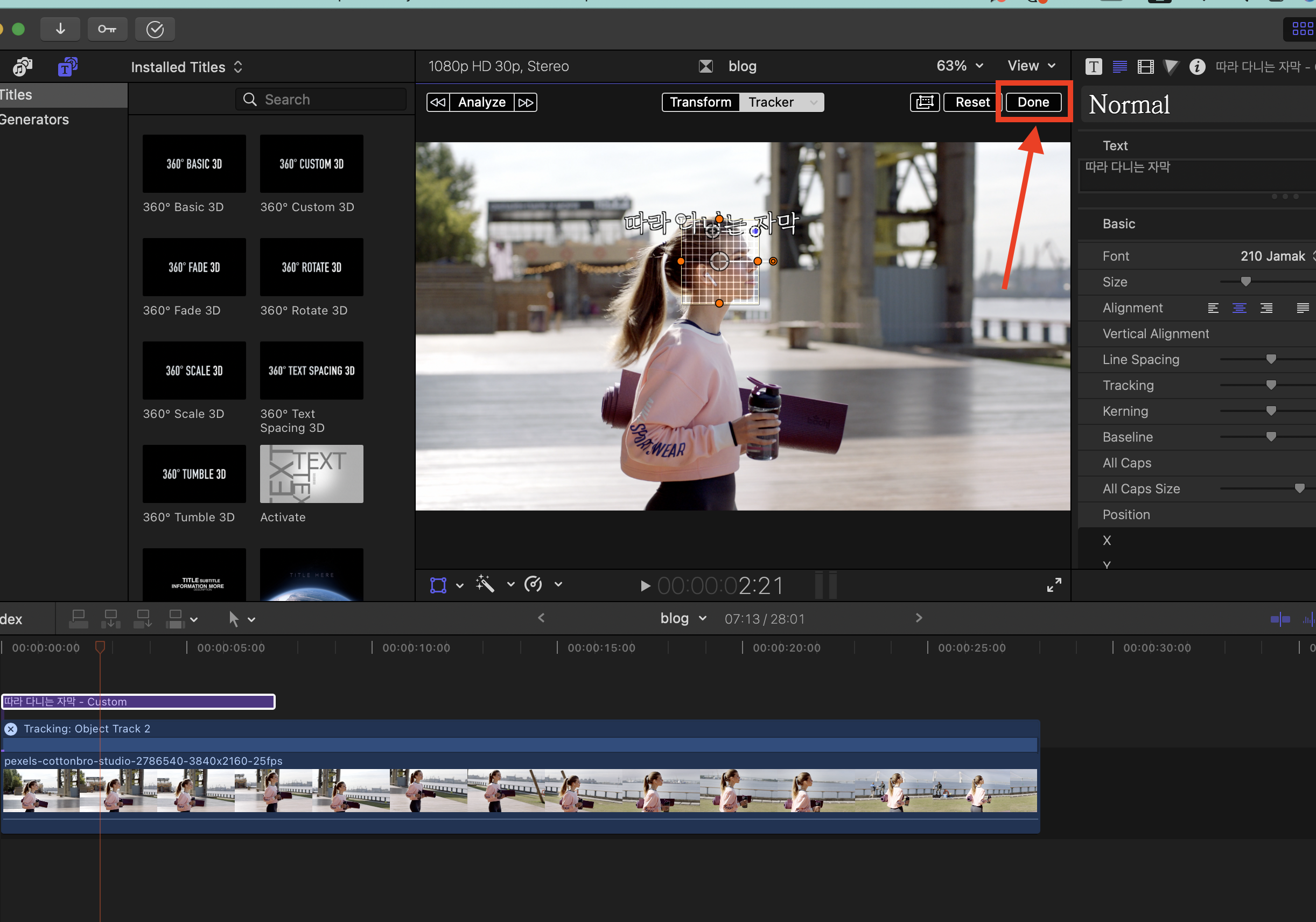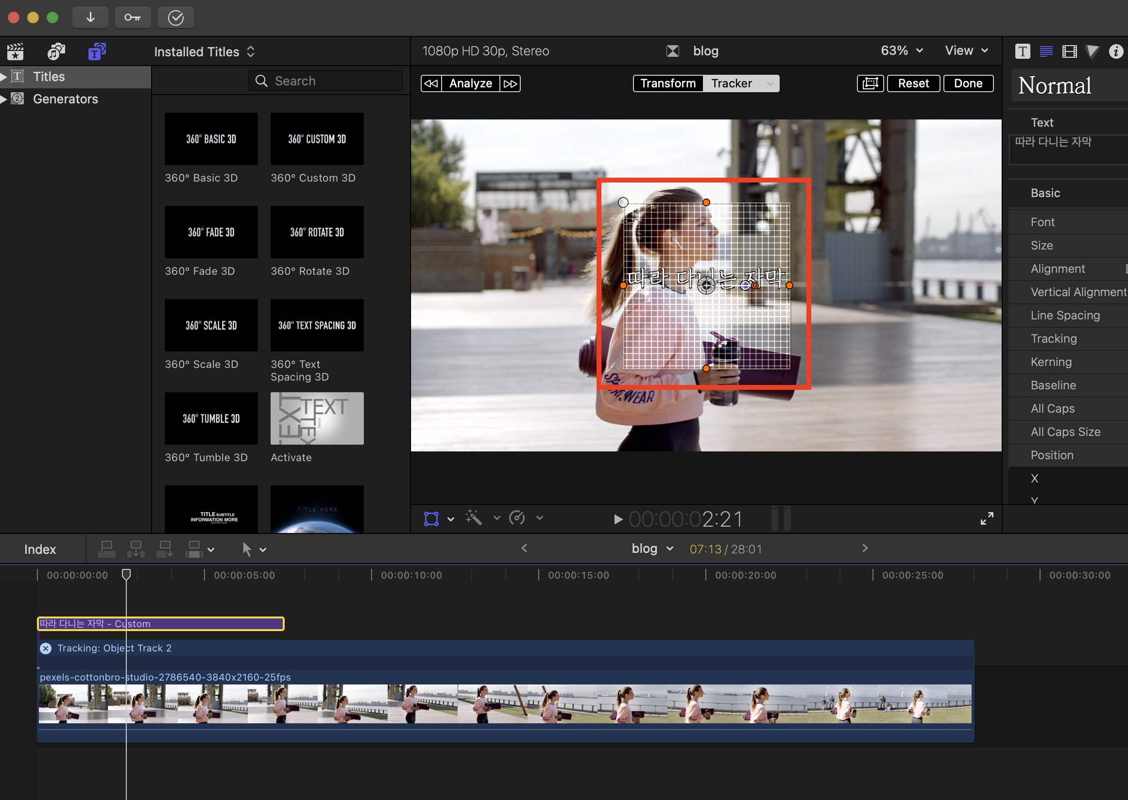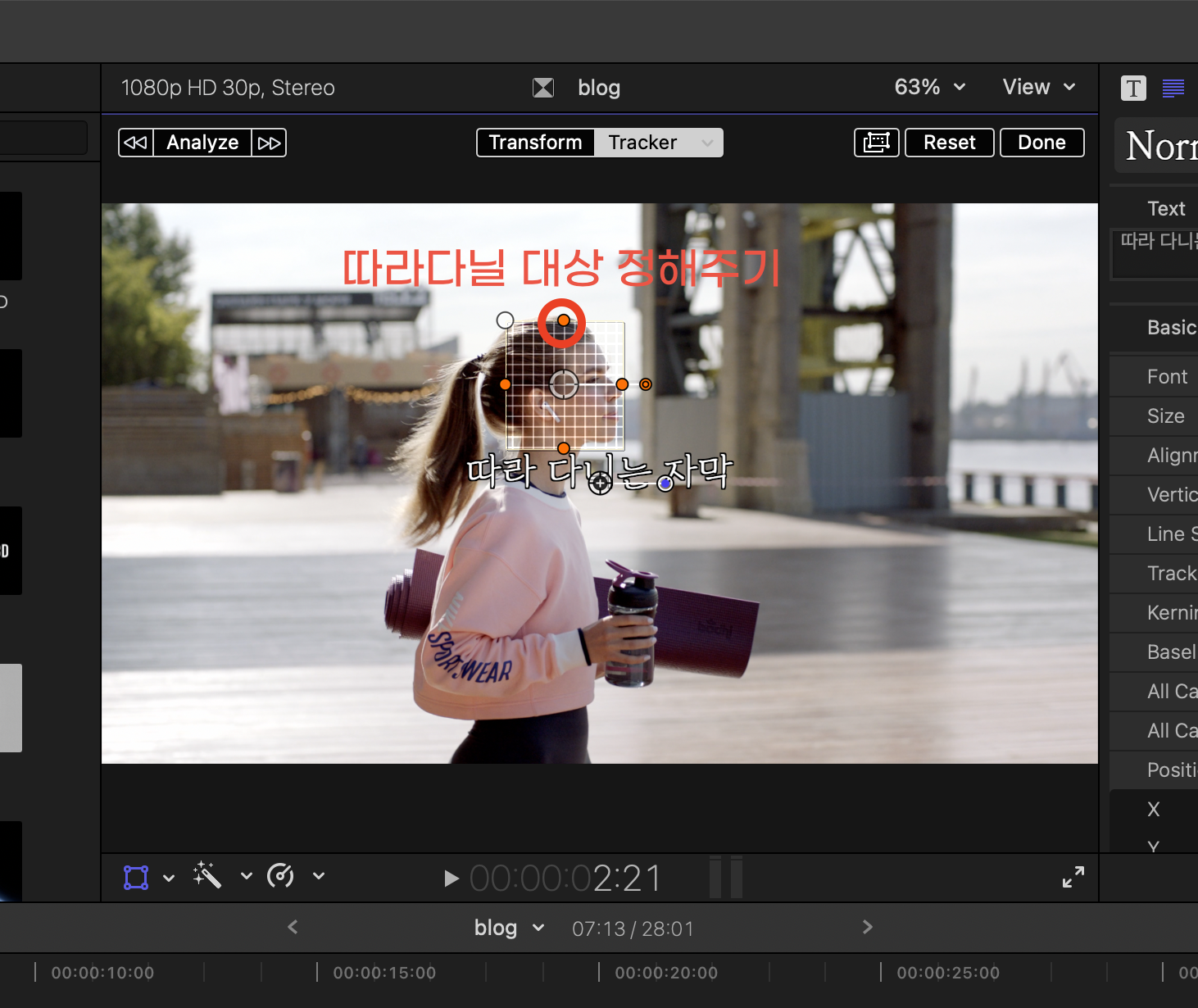 최근 파이널컷에서 유용하게 사용하는 기능 중 하나가 바로 트래커 기능이다. 자동으로 자막이 따라다니게 할 수도 있고, 모자이크도 자동으로 따라다니게 만들 수 있다. 오늘은 사람 얼굴 위에 자막이 따라다니는 기능을 알아보려고 한다. 처음에는 복잡해보이지만 차근차근 따라하면 쉽게 만들 수 있다.
