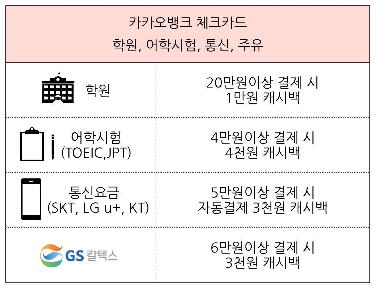 카카오뱅크 체크카드 '학원, 어학시험, 통신, 주유' 혜택