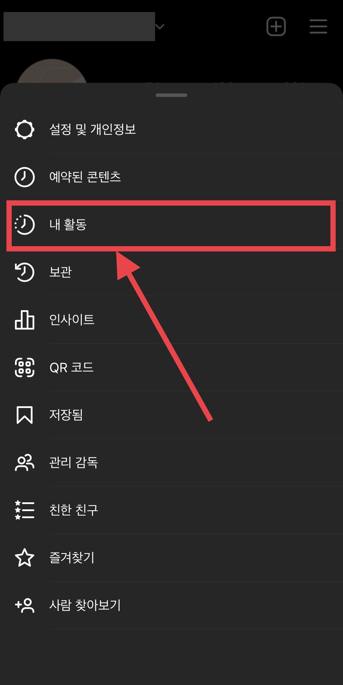 ▼ 아래와 같이 메뉴가 나오면 [내 활동]을 선택한다.