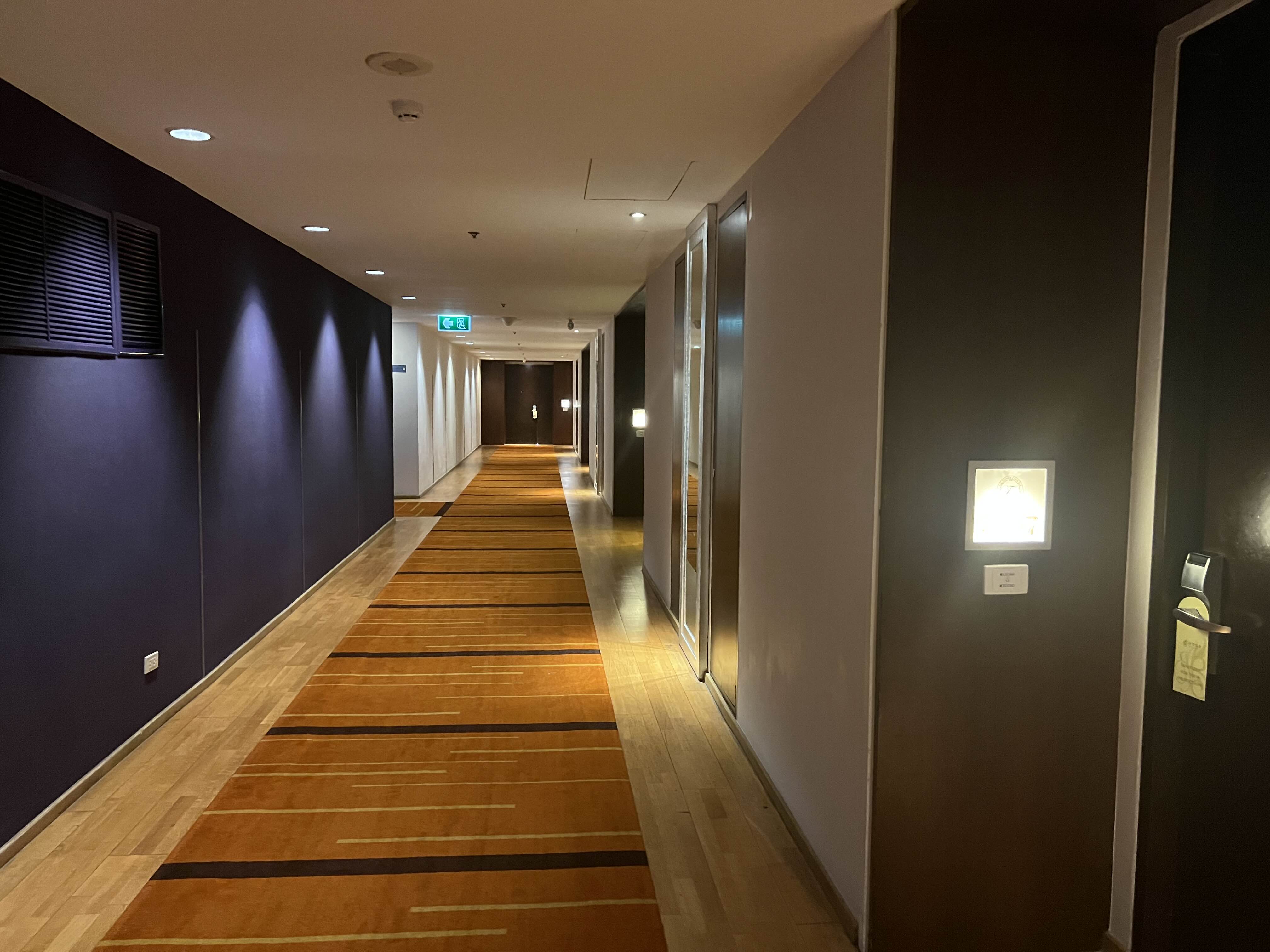 응접실을 지나면 주방과 화장실을 양옆에 둔 복도가 보인다. 한국에서 같은 가격으로 묵었던 호텔과 비교돼서 놀랐음.