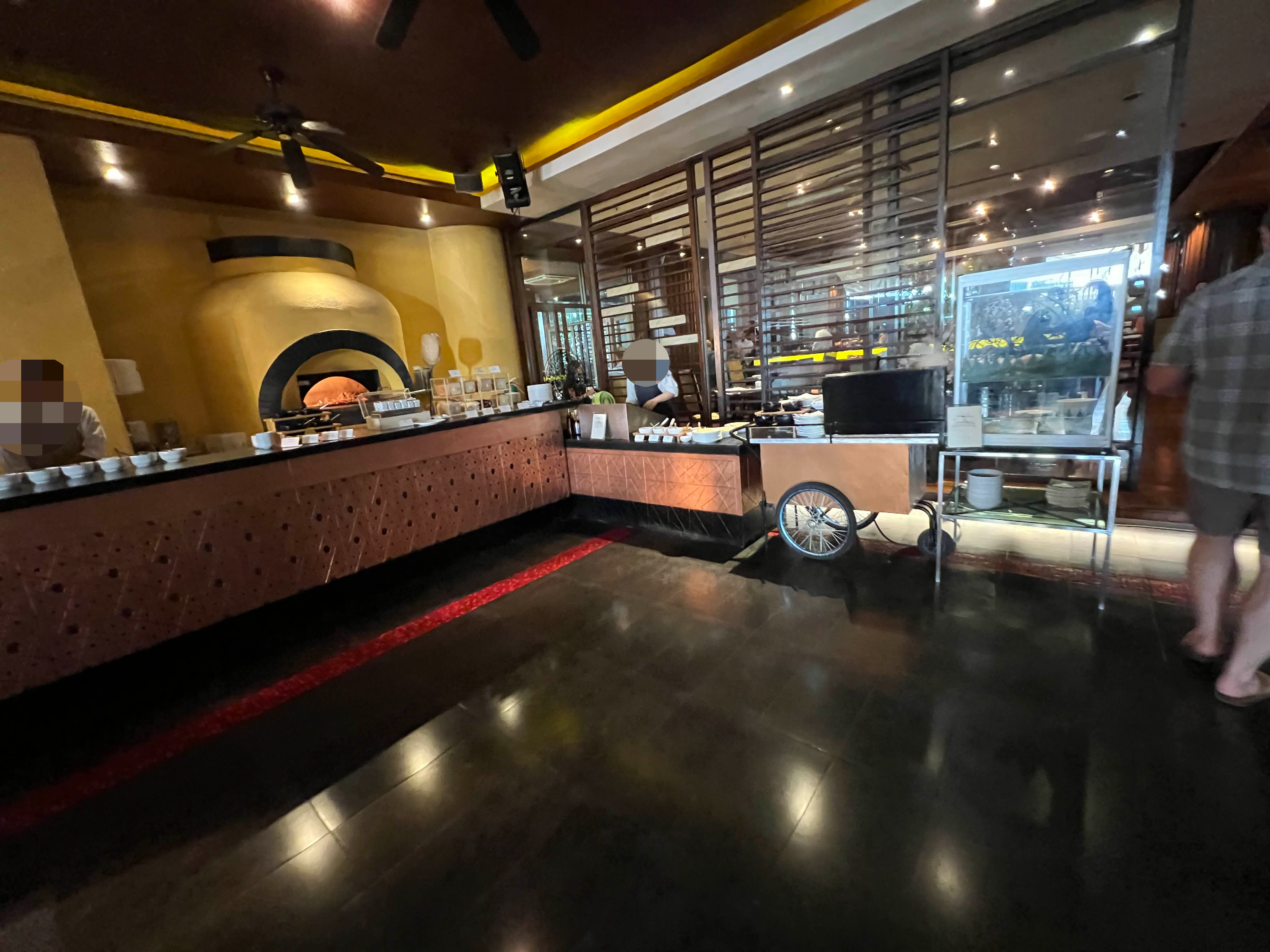 아침조식이 포함이라서 일찍부터 내려갔다. 더웠지만 야외 풍경을 보고 싶어서 야외에 자리를 잡았다.