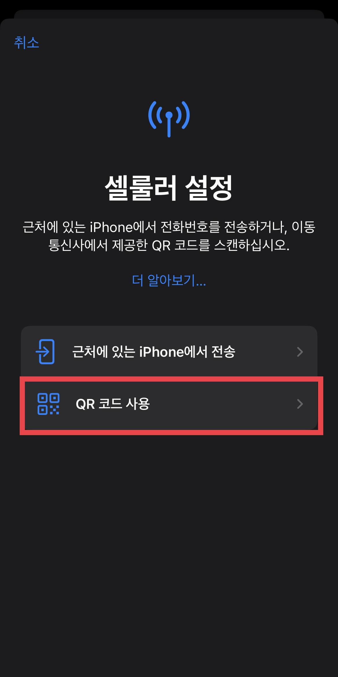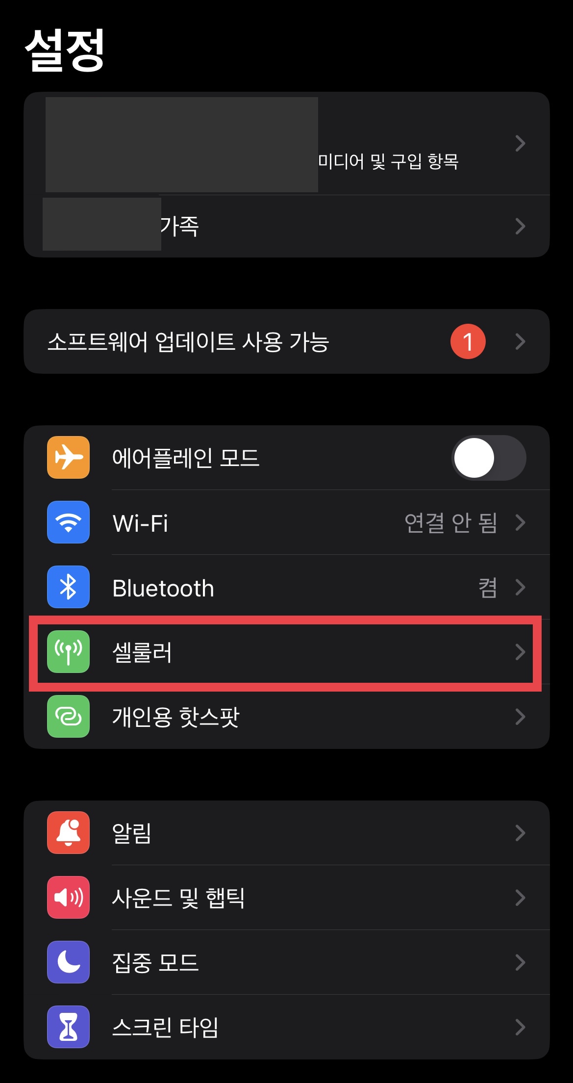 ▼ 셀룰러 메뉴에 들어간다.
