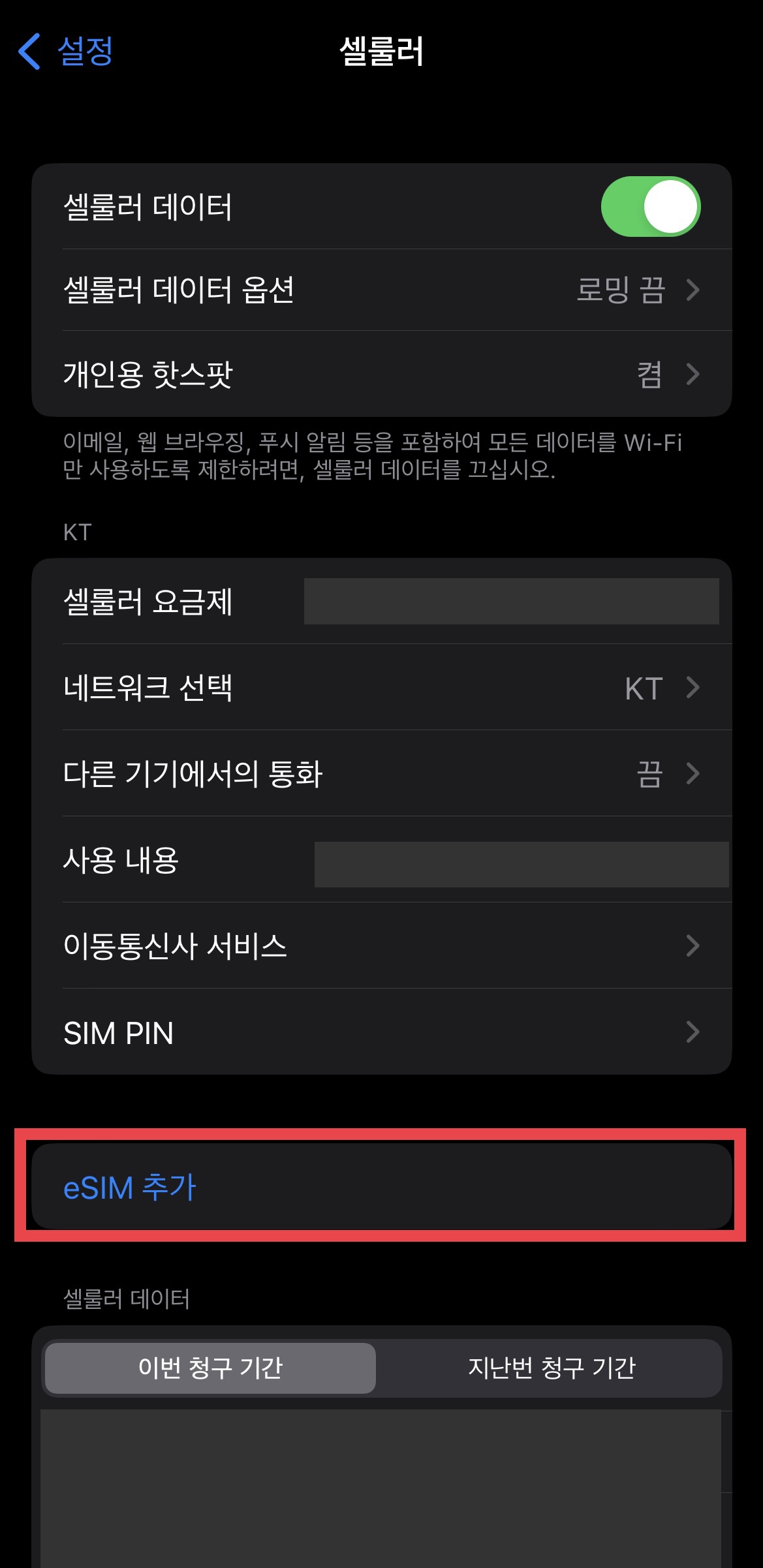 ▼ 이 상태가 되면 일단 eSIM설정 완료.