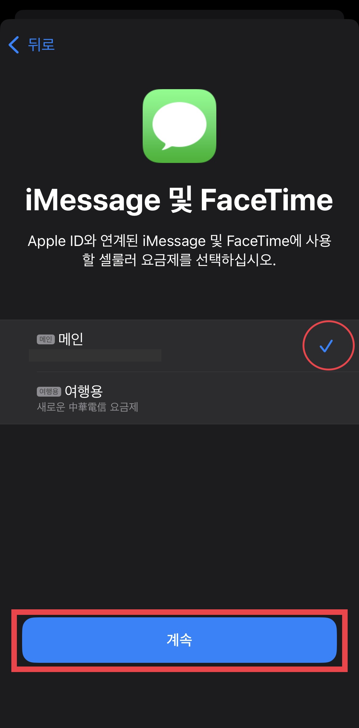 ▼ 아이메세지와 페이스타임도 메인으로 설정해준다.