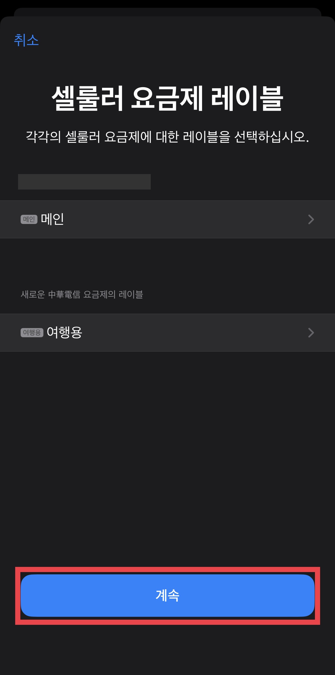 ▼ esIM활성화를 위해 계속을 누른다.