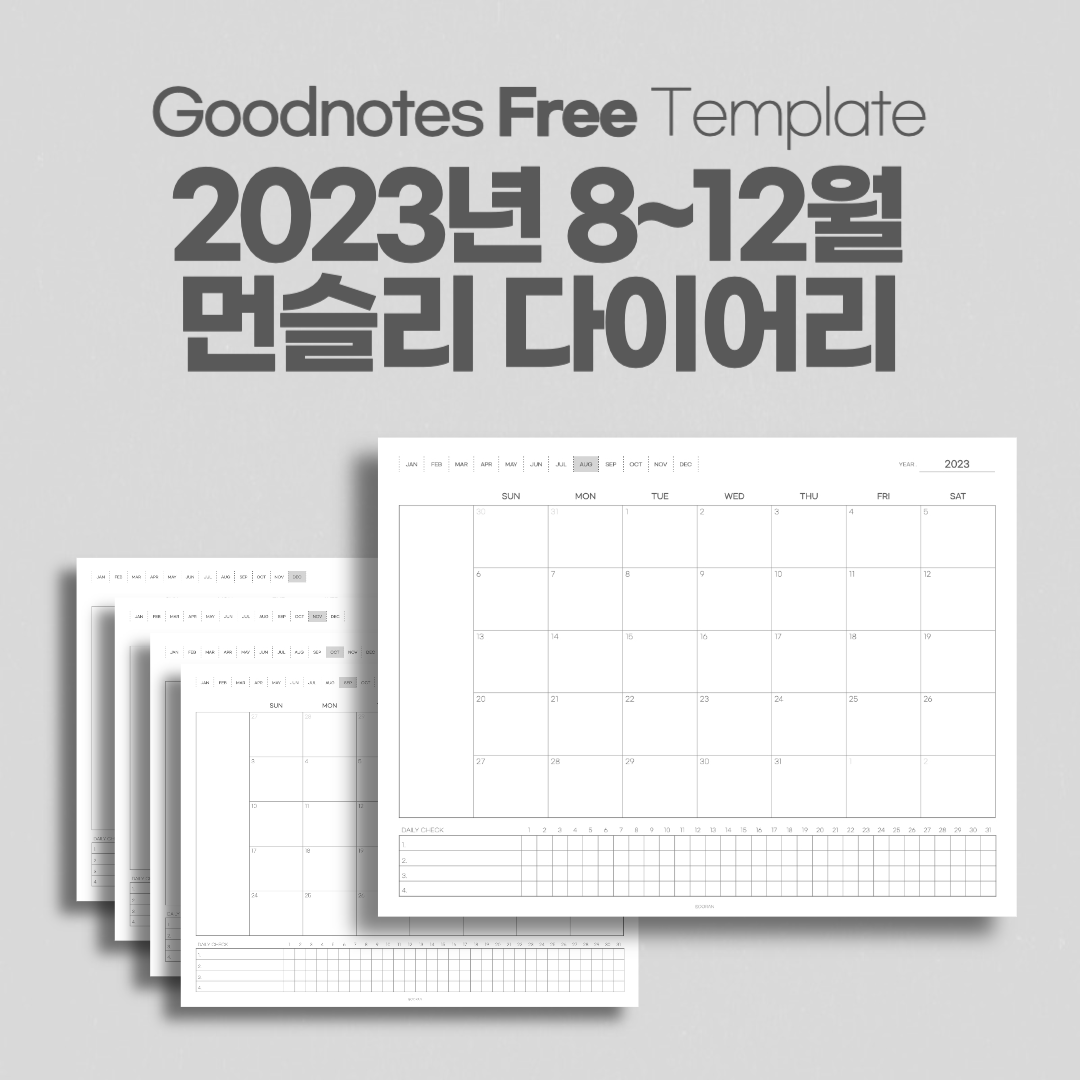 굿노트 2023년 8월부터~12월까지 먼슬리 다이어리 서식 공유 with 데일리 체크 / Goodnotes monthly diary template