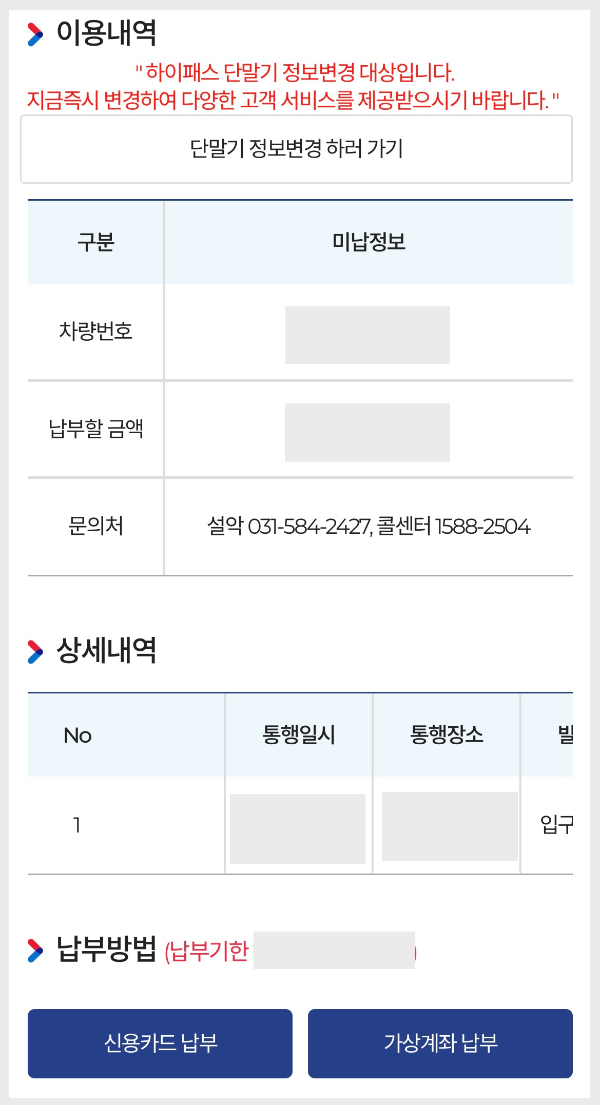 혹은, [고속도로 통행료 홈페이지]에서 따로 납부할 수 있으니, 걱정하지 않아도 된다.