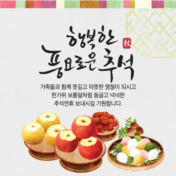 추석 명절에 주변 지인들에게 돌리면 좋을만한 간단한 명절 인사말 문구가 담긴 이미지를 가져왔습니다. 이미지와 함께 덕담도 함께 나누며 마음만큼 풍요로운 한가위 되시길 바랍니다.