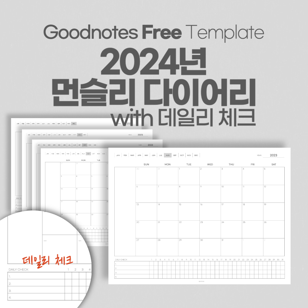 | 굿노트 2023년 8월부터~12월까지 먼슬리 다이어리 서식 공유 with 데일리 체크 / Goodnotes monthly diary template (452) | 2023.08.29 |