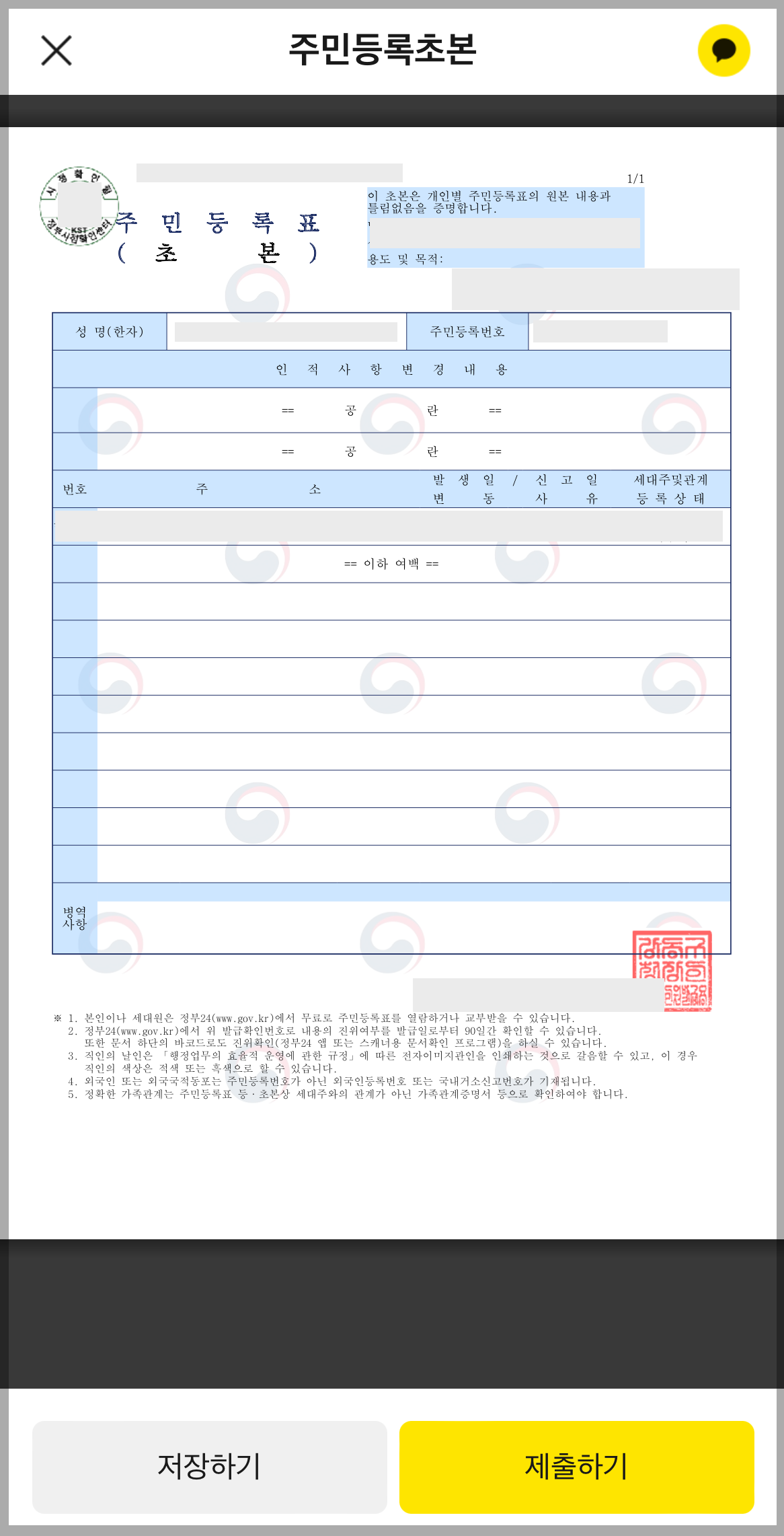 카톡 핸드폰 주민등록초본 간편 발급 방법