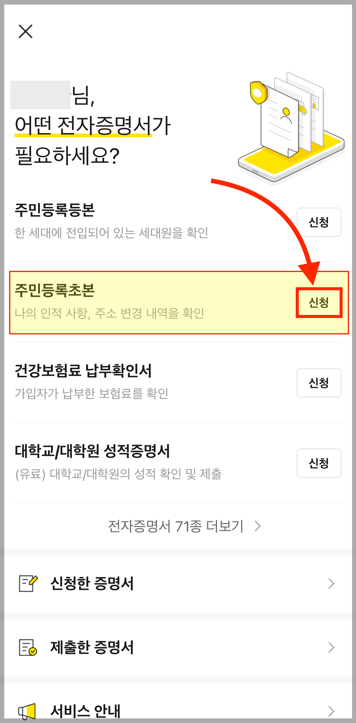 카톡 핸드폰 주민등록초본 간편 발급 방법