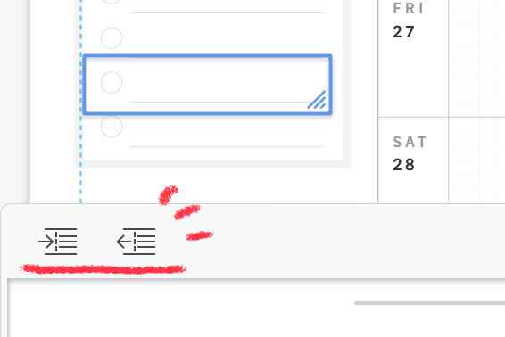 말 그대로 이 버튼을 누르면, 원하는 부분부터 글을 시작할 수 있습니다. 엔터키 버튼을 누르면 들여 쓰기 해놓은 위치로 이동하기 때문에, 필기할 때 아주 유용하게 사용할 수 있습니다. 왼쪽 버튼을 누르면 들여쓰기 선이 오른쪽으로 이동을 하게되고, 오른쪽 버튼을 누르면 들여쓰기 선이 왼쪽으로 이동하게 됩니다.
