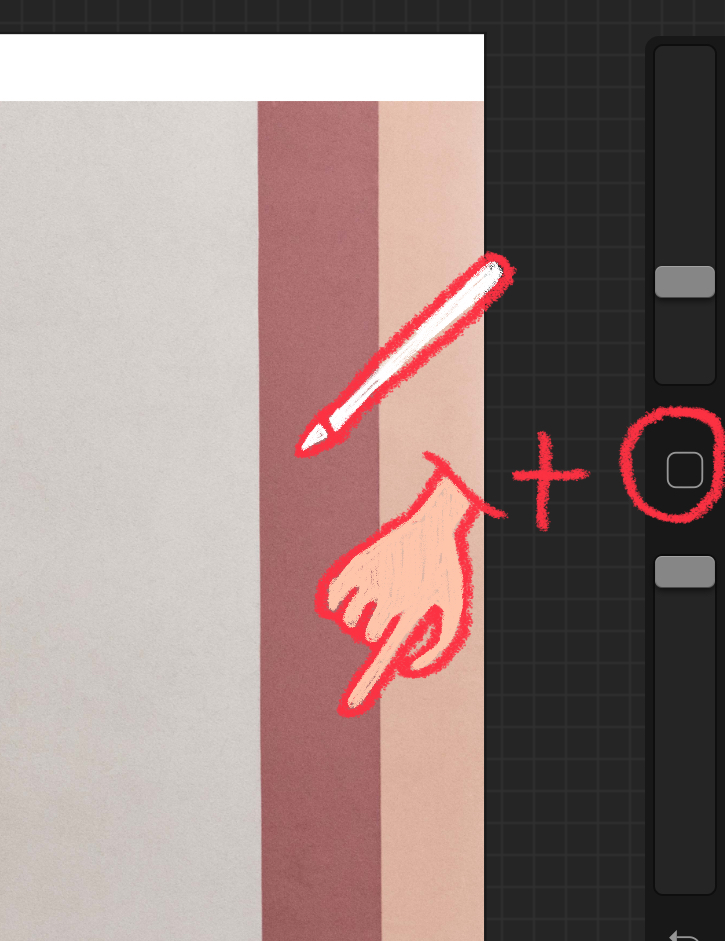 인터페이스의 ☐ 버튼을 누른 채 + 펜슬 혹은 손으로 색상을 터치해줍니다. 뭔가 한번 더 귀찮을 수 있는 작업이지만, 이렇게 하면 누름과 동시에 색상 추출이 가능합니다. 한 번에 선택이 가능한 것이죠. 옮기지 않고 바로 그 색상을 선택해야 할 때 빠르게 사용할 수 있습니다.