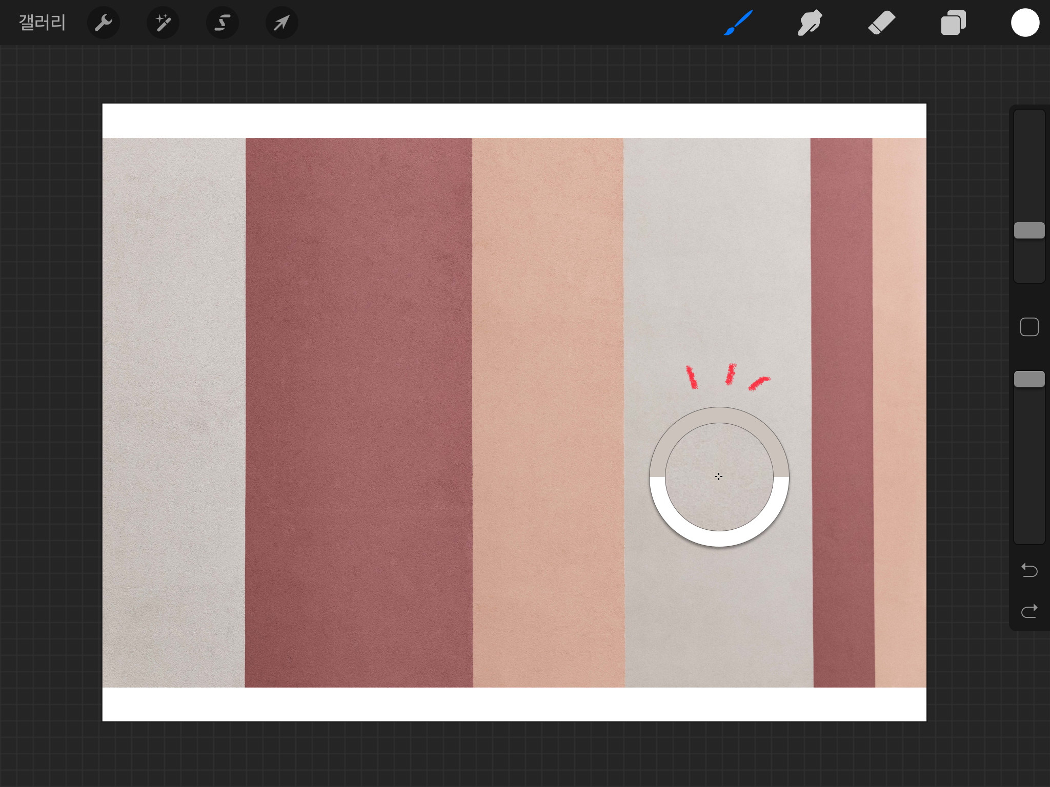아래와 같이 손 혹은 펜슬을 움직여서 원하는 색상을 골라주면 색상 추출이 가능합니다.