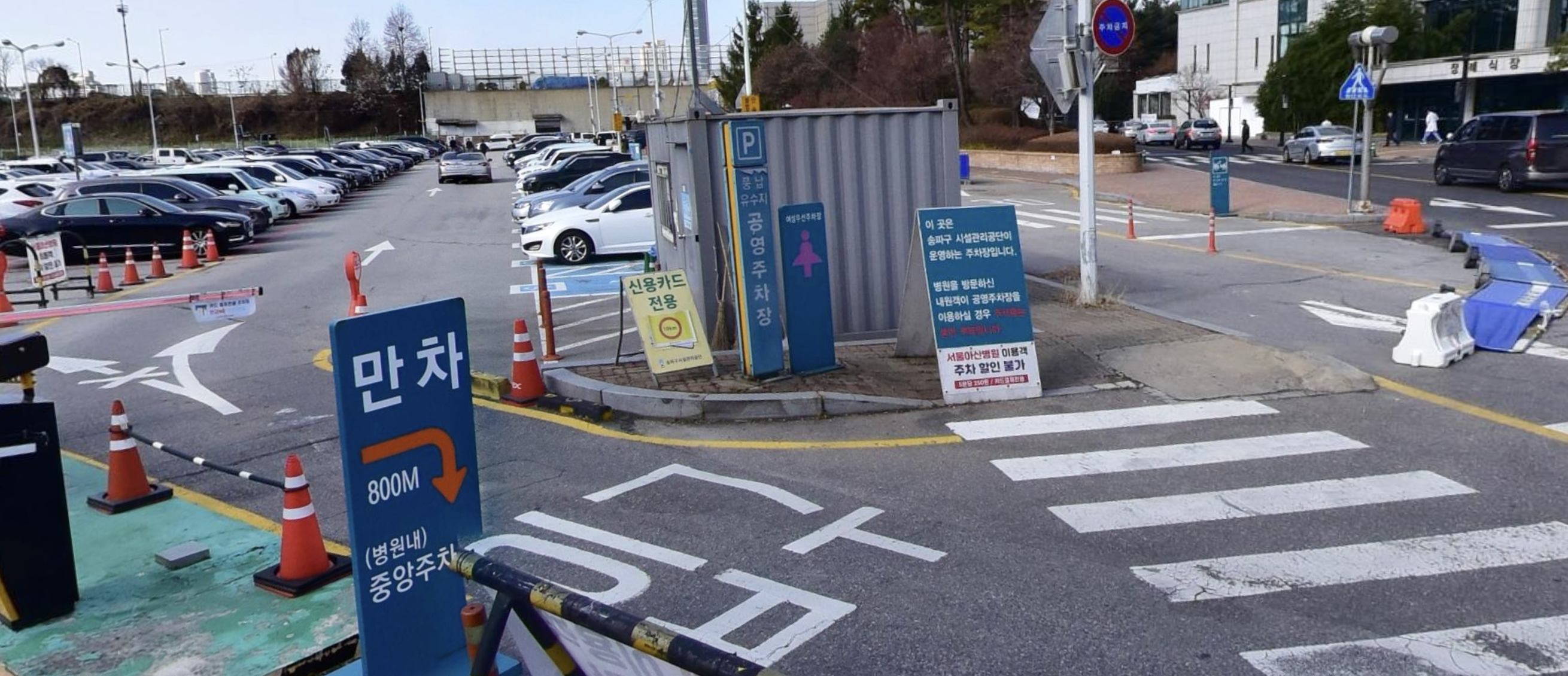 유료주차장이지만 주차가 어려운 아산병원 장례식장을 방문하는 방문객들은 이 공영 주차장을 이용하면 편리할 것 같다.