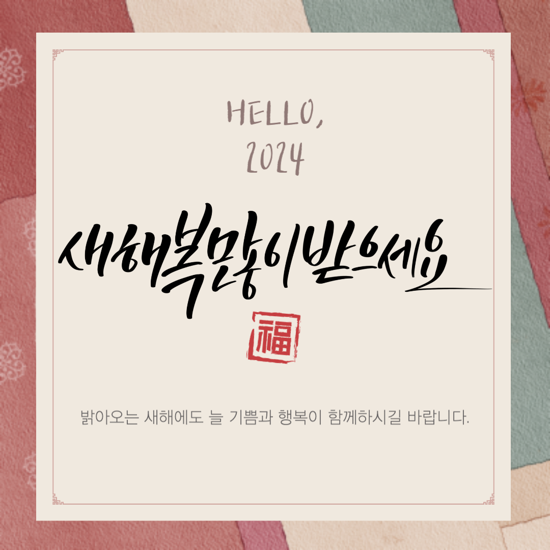 미리캔버스를 이용해서 직접 만든 2024년 갑진년 새해인사 이미지 10장을 공유합니다. 아래 이미지에는 직접 쓴 캘리그라피 그림들도 포함되어 있습니다. 유용하게 사용하시길 바랍니다. 새해 복 많이 받으세요.
