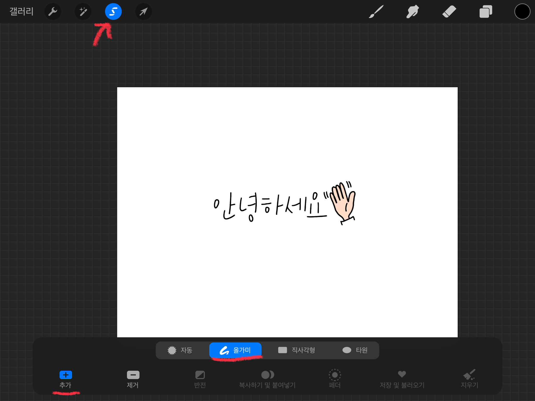 이제 애플 펜슬을 이용해서 손그림 부분만을 아래와 같이 선택해줍니다.