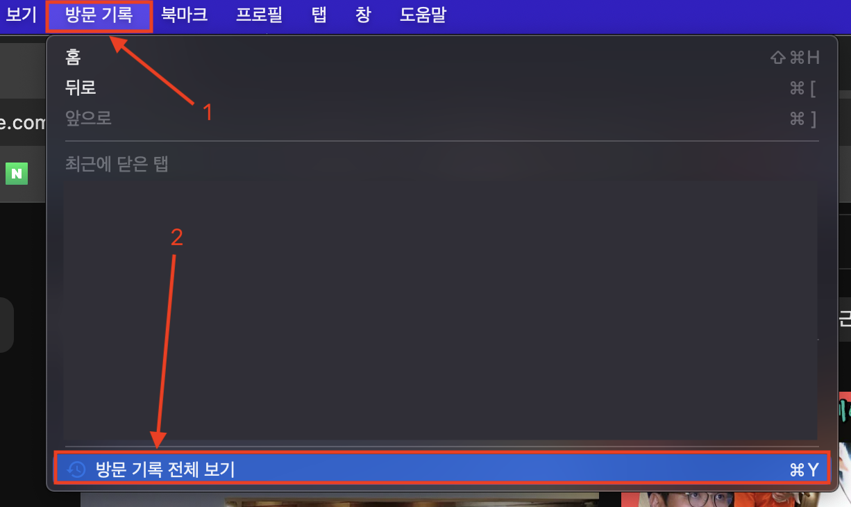 상단에 있는 [방문 기록]을 누른 뒤 [방문기록 전체 보기]를 한다.