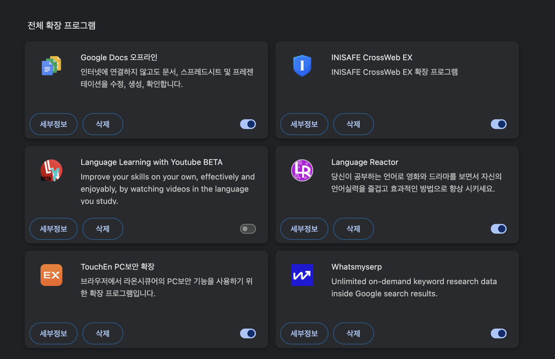 방문기록을 지웠는데 또 무한 로딩에 걸린 분들은 [확장프로그램] 확인해보세요.