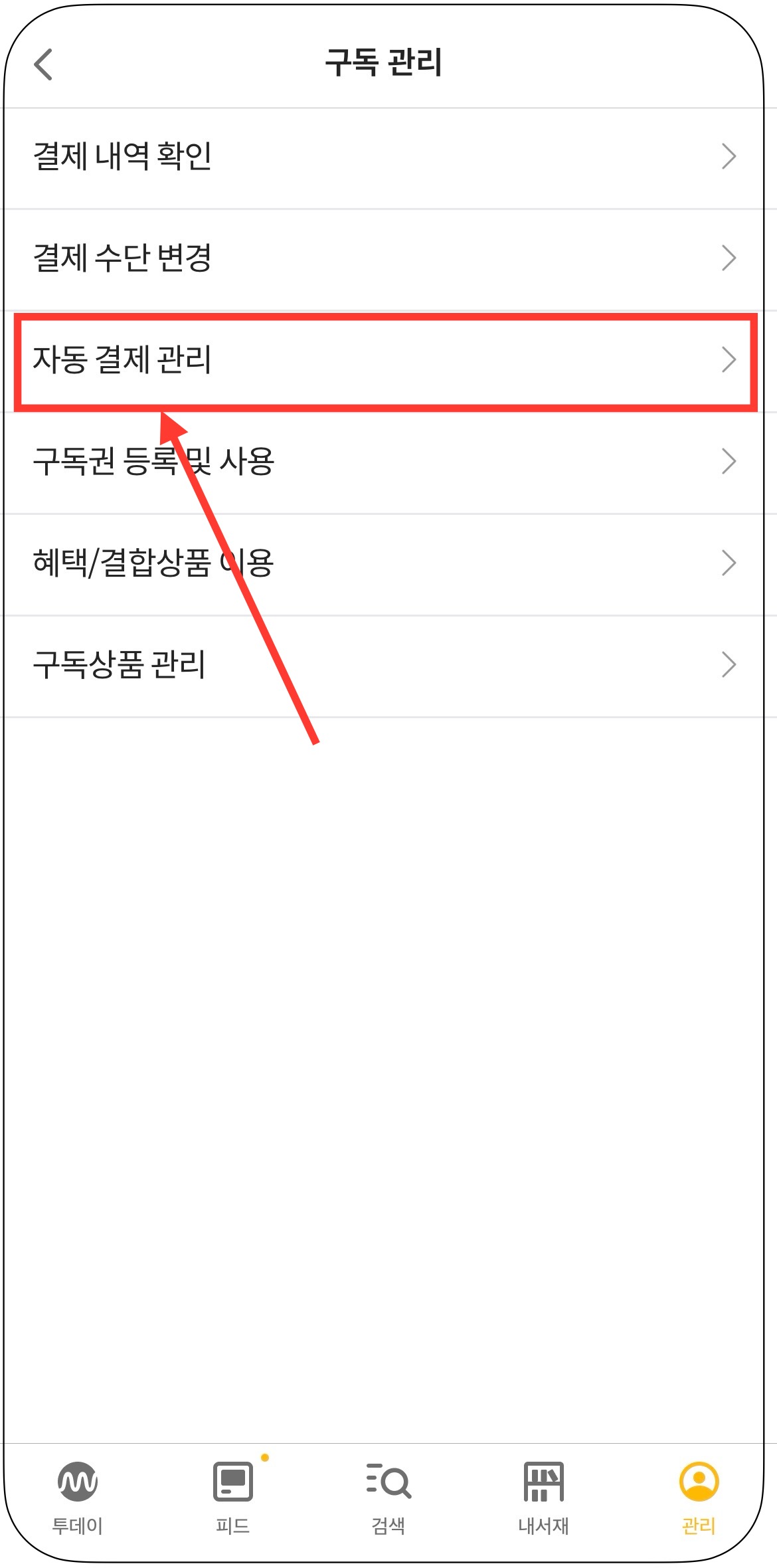 ▼ 구독 관리에 있는 [자동 결제 관리]를 눌러줍니다.