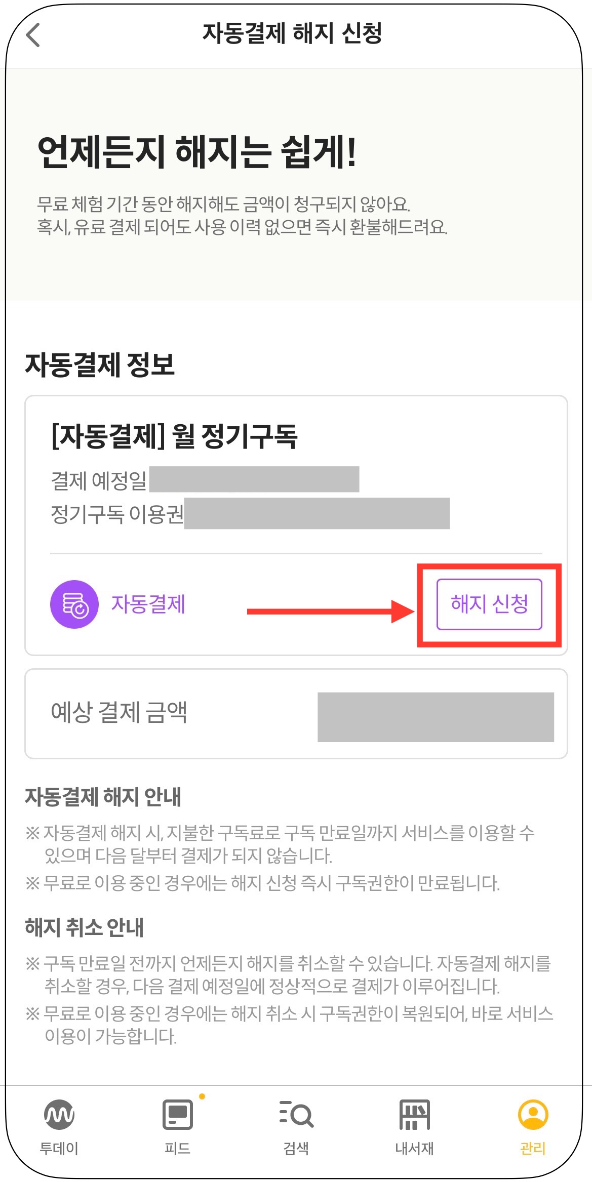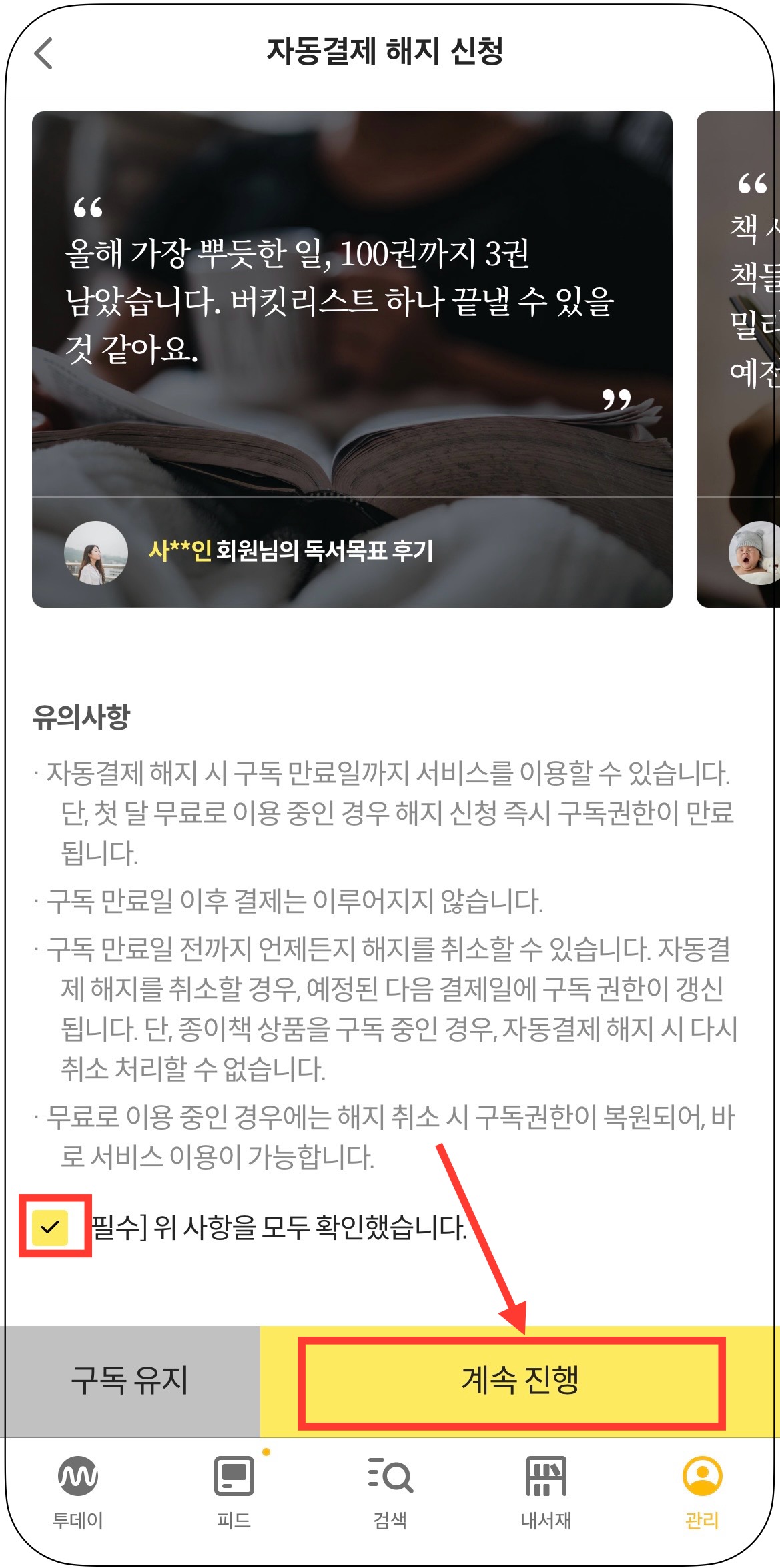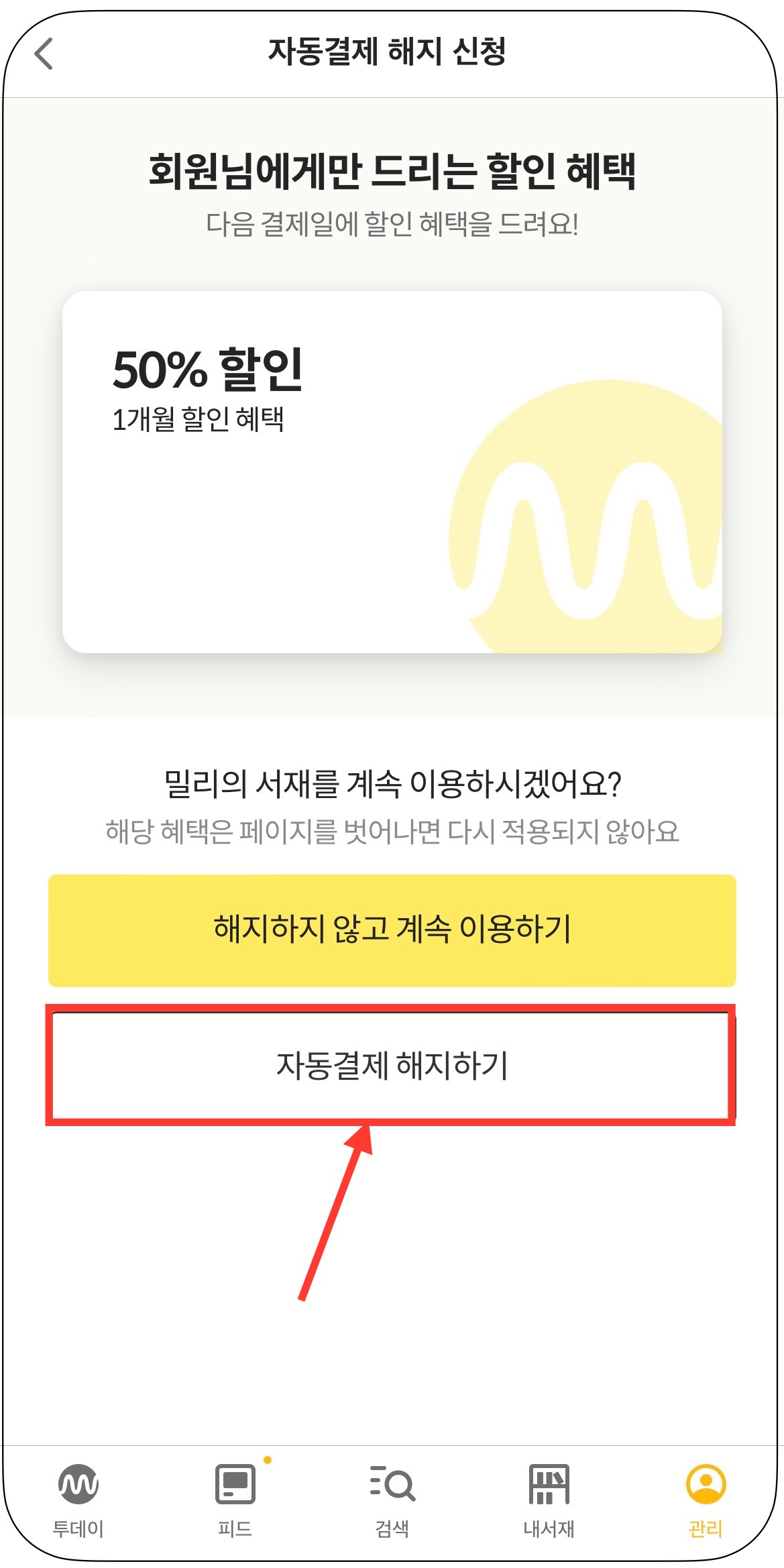 ▼ 이렇게 밀리의 서재를 구독 해지할 수 있습니다.