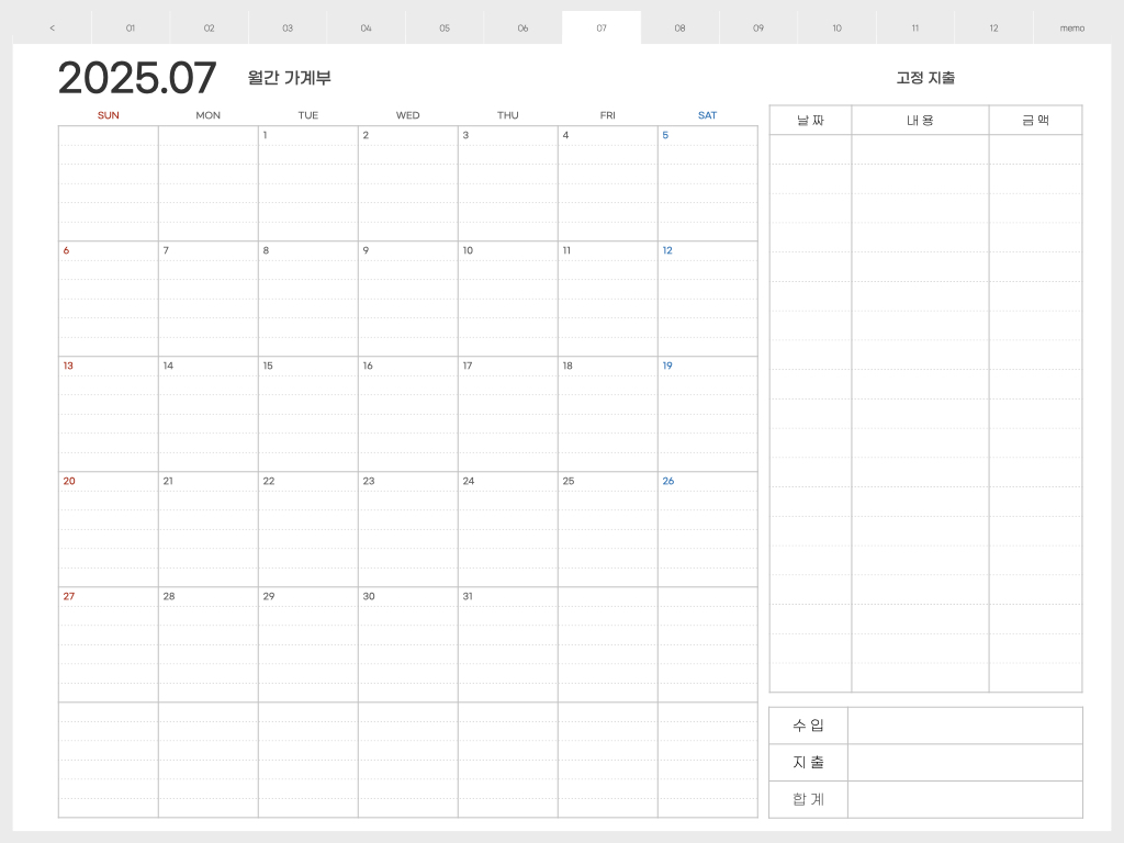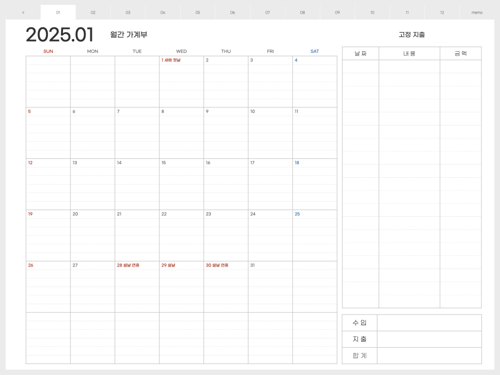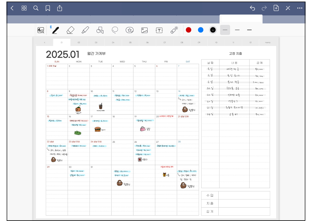 아이패드 혹은 갤럭시탭에서 사용할 수 있는 디지털 속지 입니다. 올해는 조금 이르게 2025년 가계부 속지를 만들어 왔습니다 :) 가장 많은 분들이 사용해주고 계신 속지라서 저도 빠르게 만들어 보았어요. 가계부 속지는 가계부 뿐만아니라 다이어리로도 사용할 수 있어서 활용도가 높은 것 같아요.