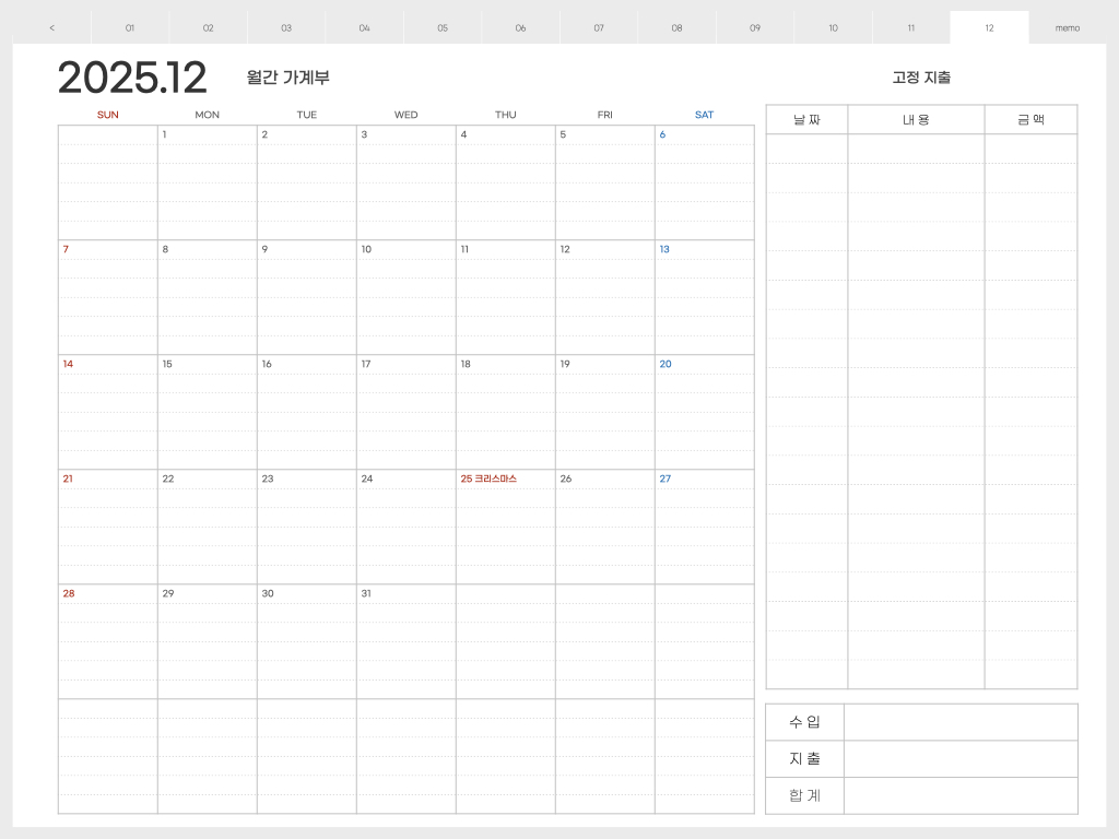 굿노트 2025년 가계부 속지 PDF 다운로드 바로가기 >>