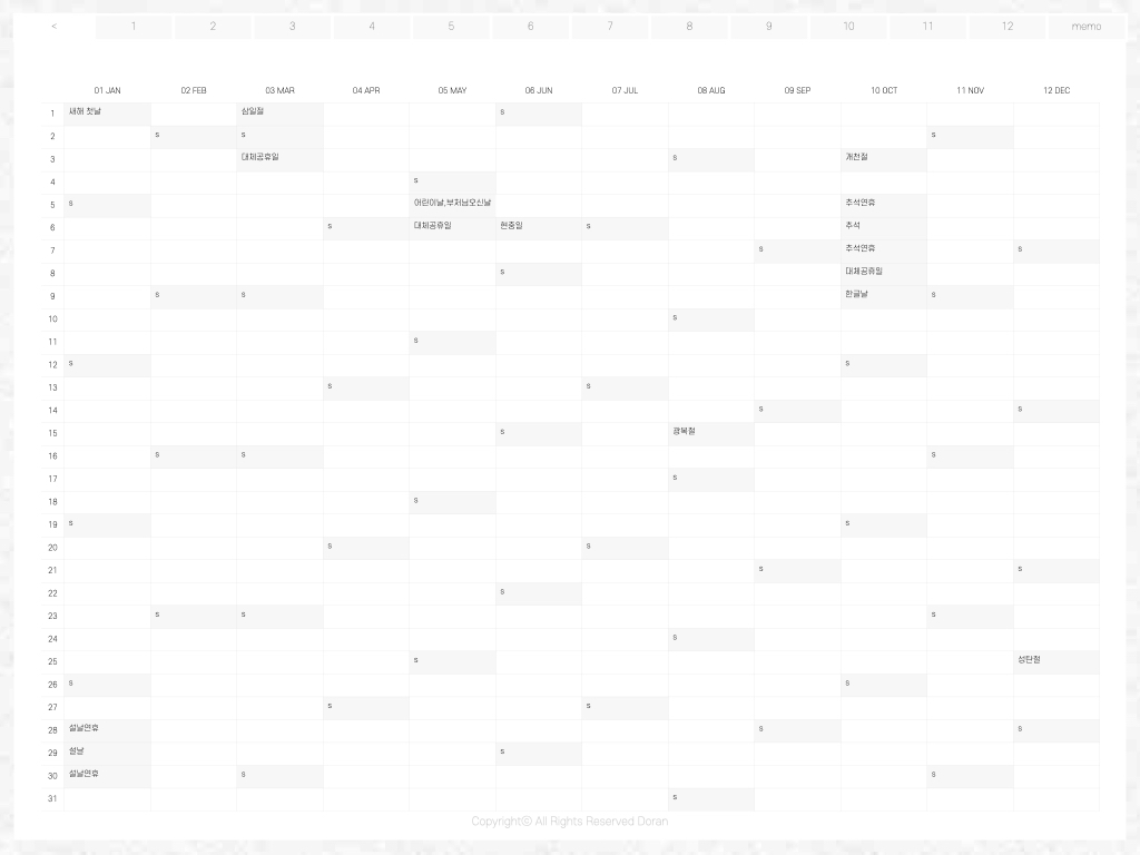 1년을 한 눈에 볼 수 있는 페이지 입니다.