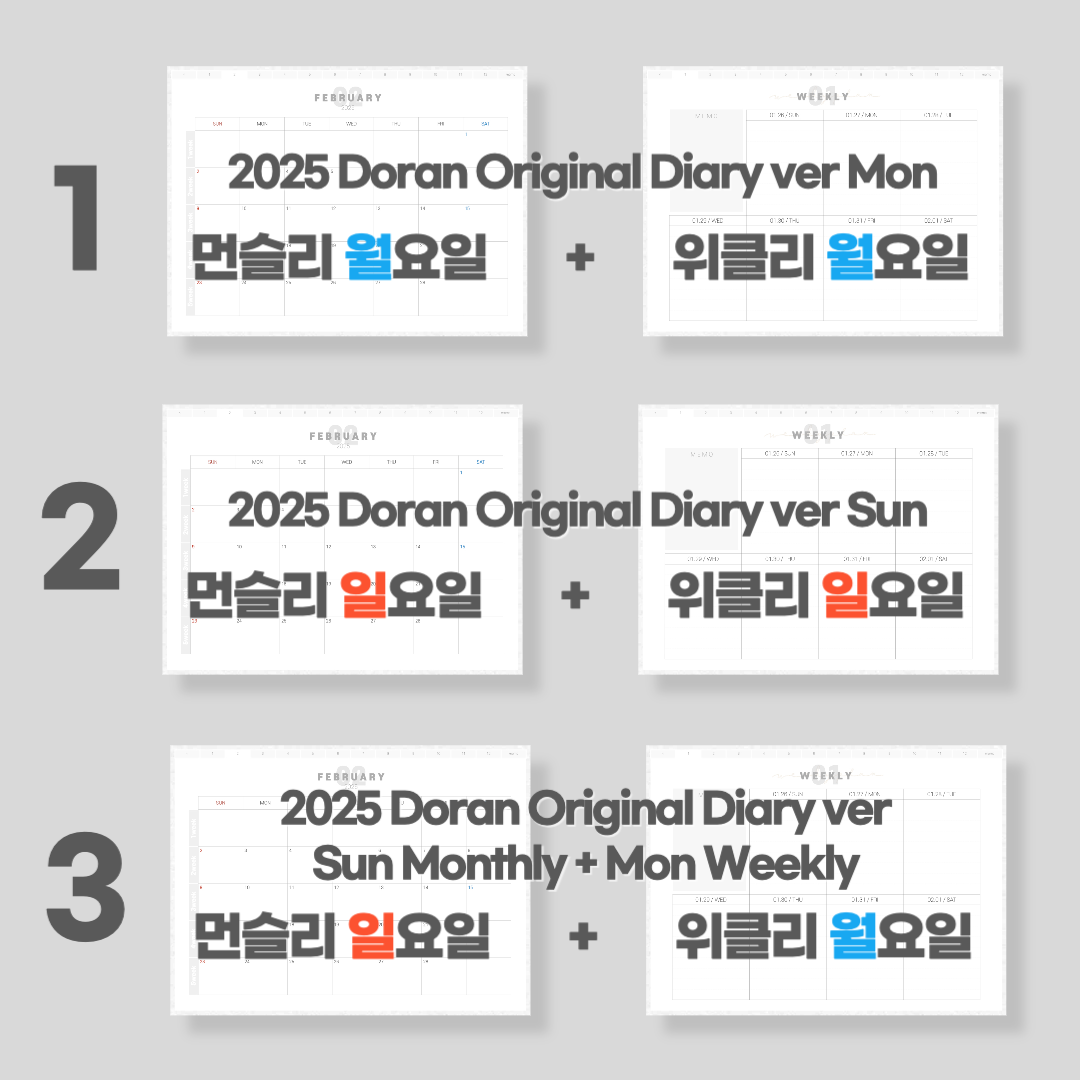 수정사항) 2024.12.16 22:05 분기별 페이지4p 링크가 잘못된 것 수정함 (파일명 2025 Doran Original Diary ver Sun Monthly + Mon Weekly 1.1)
