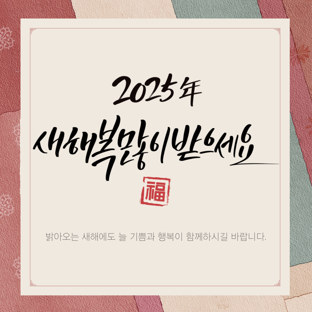 2025년에는 지금까지 쌓아온 노력과 성과가 올해 더욱 빛나는 결실로 나타나기를 진심으로 바랍니다! 주변 분들과 덕담 나누면서 한해를 뜻깊게 마무리 해보시길 바랍니다 ^^)