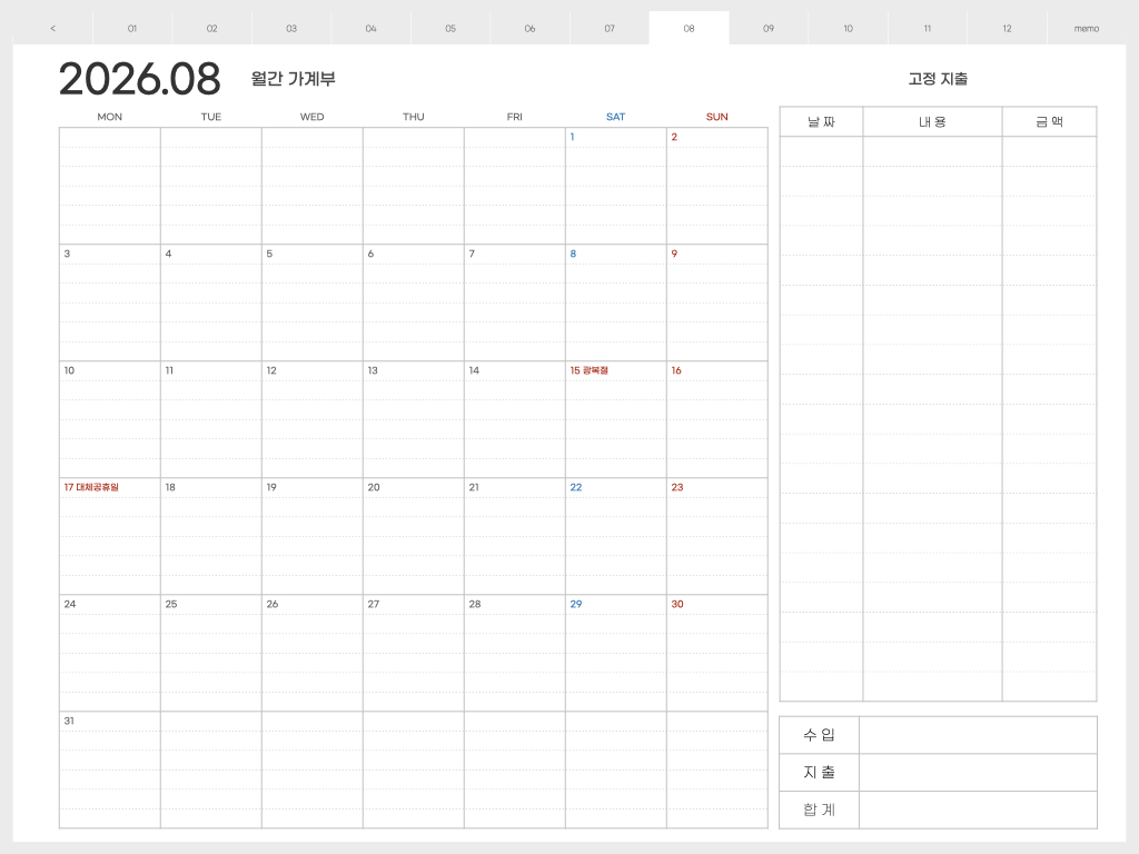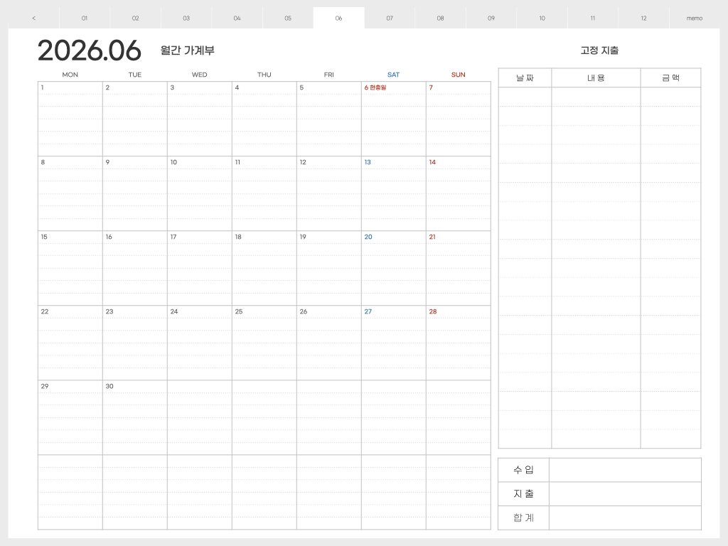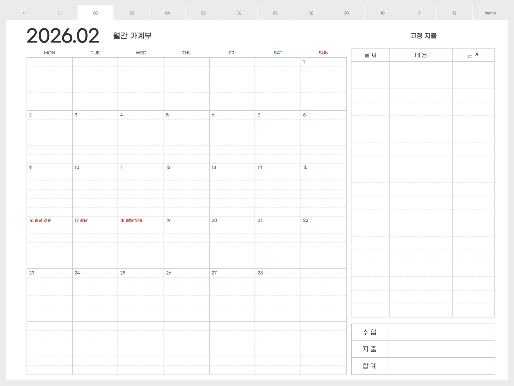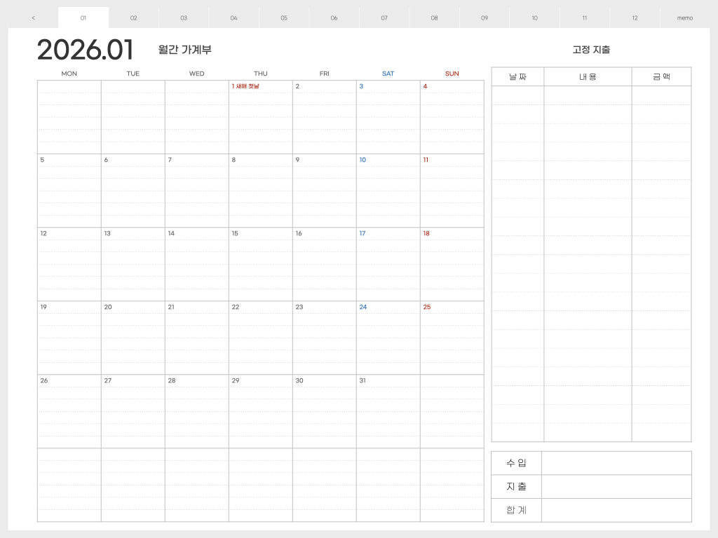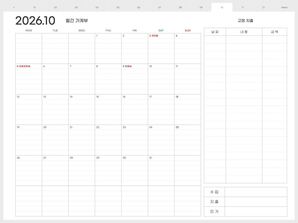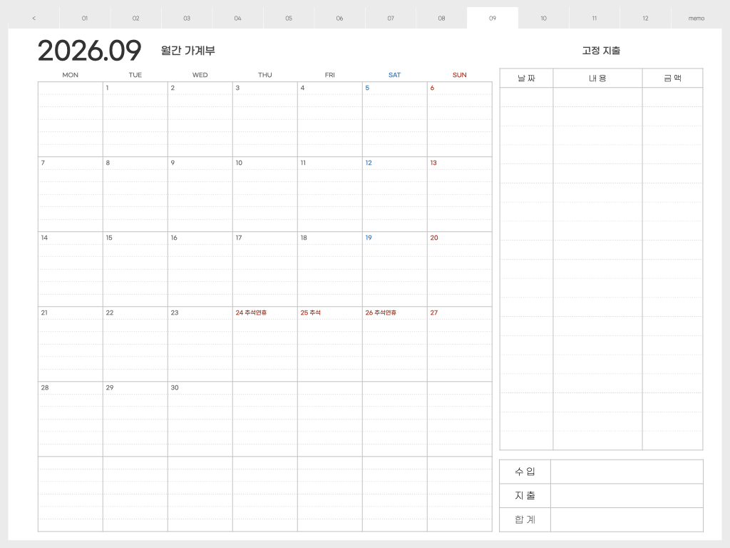 ▽ 가계부 <월요일 시작> 버전