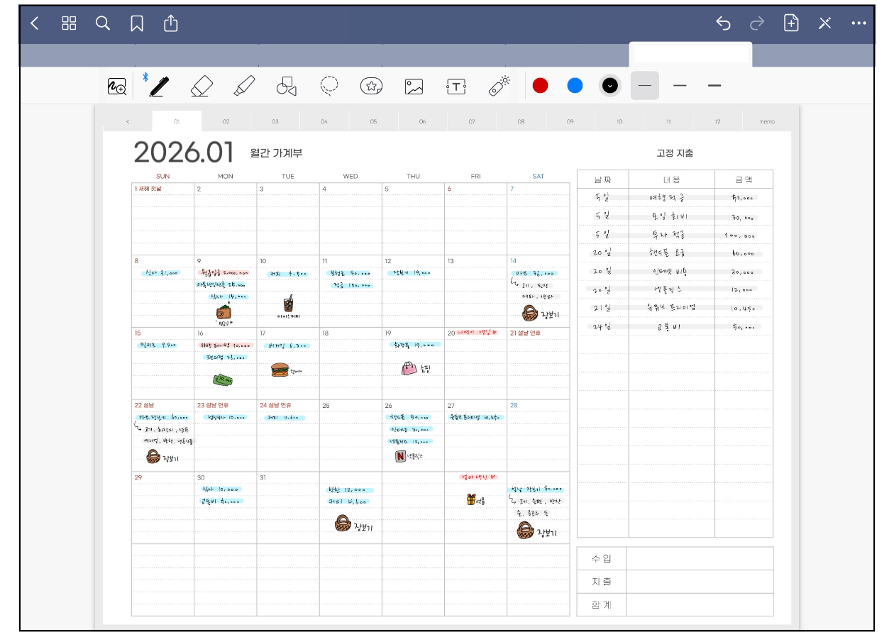 안녕하세요! 2026년 굿노트 가계부 속지 PDF 서식을 만들어 왔습니다 :) 굿노트 노타빌리티 등 PDF를 이용한 필기 프로그램에서는 모두 사용할 수 있답니다.