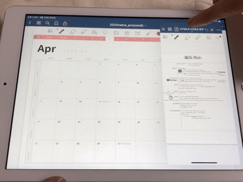 열려있는 노트들 중에서 분할하고자 하는 창 제목을 선택합니다. 손가락으로 끌어내리듯 움직인 후에 아이패드 화면 테두리까지 끌고 오면 화면이 분할됩니다.