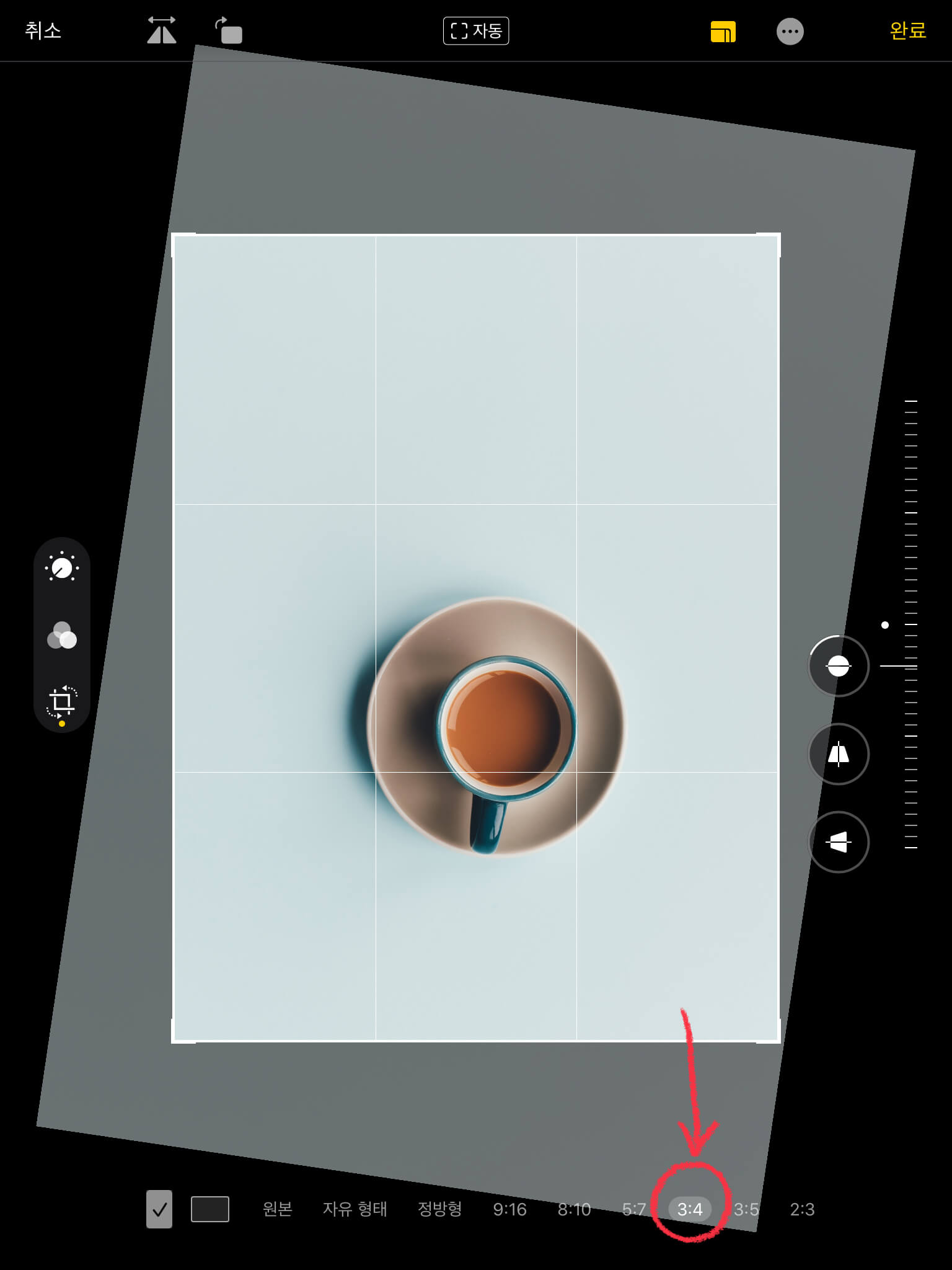 그리고 아래와 같이 이 이미지의 크기를 3:4 로 설정해준 뒤 [완료]를 누릅니다.