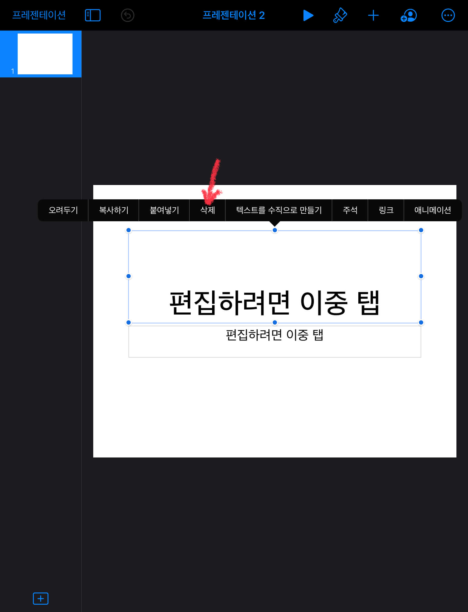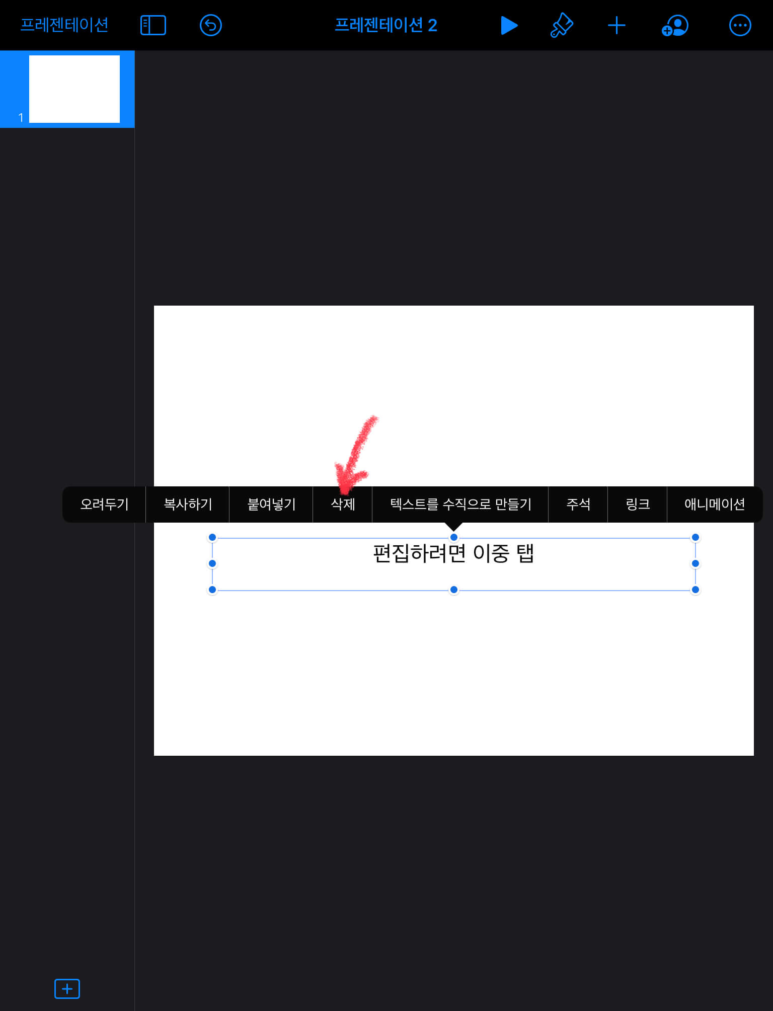 * 텍스트를 한번 터치하면 아래와 같은 버튼이 나옵니다