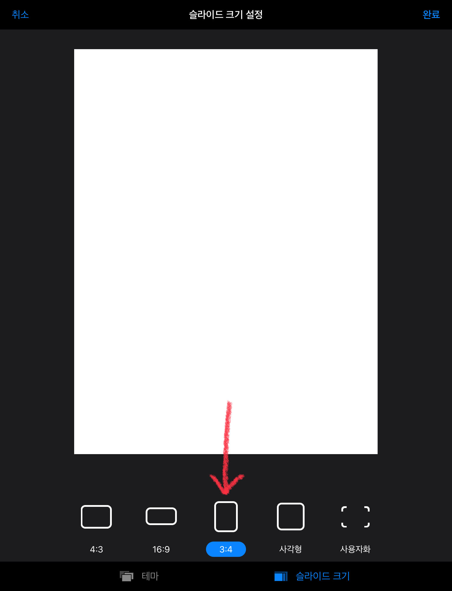그리고 아래와 같이 이 이미지의 크기를 3:4 로 설정해준 뒤 [완료]를 누릅니다.