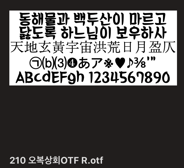 디자인 210의 오복상회 체입니다. 레트로 한 느낌이 물씬 풍기는 폰트입니다.