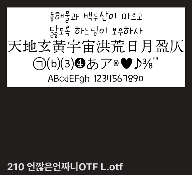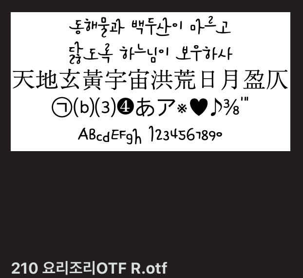 이 외에도 여락이들 영상에서 자주 볼 수 있는 폰트로는 210 언짢은 언짜니, 210 요리조리, 210 편지봉투 등이 있습니다.