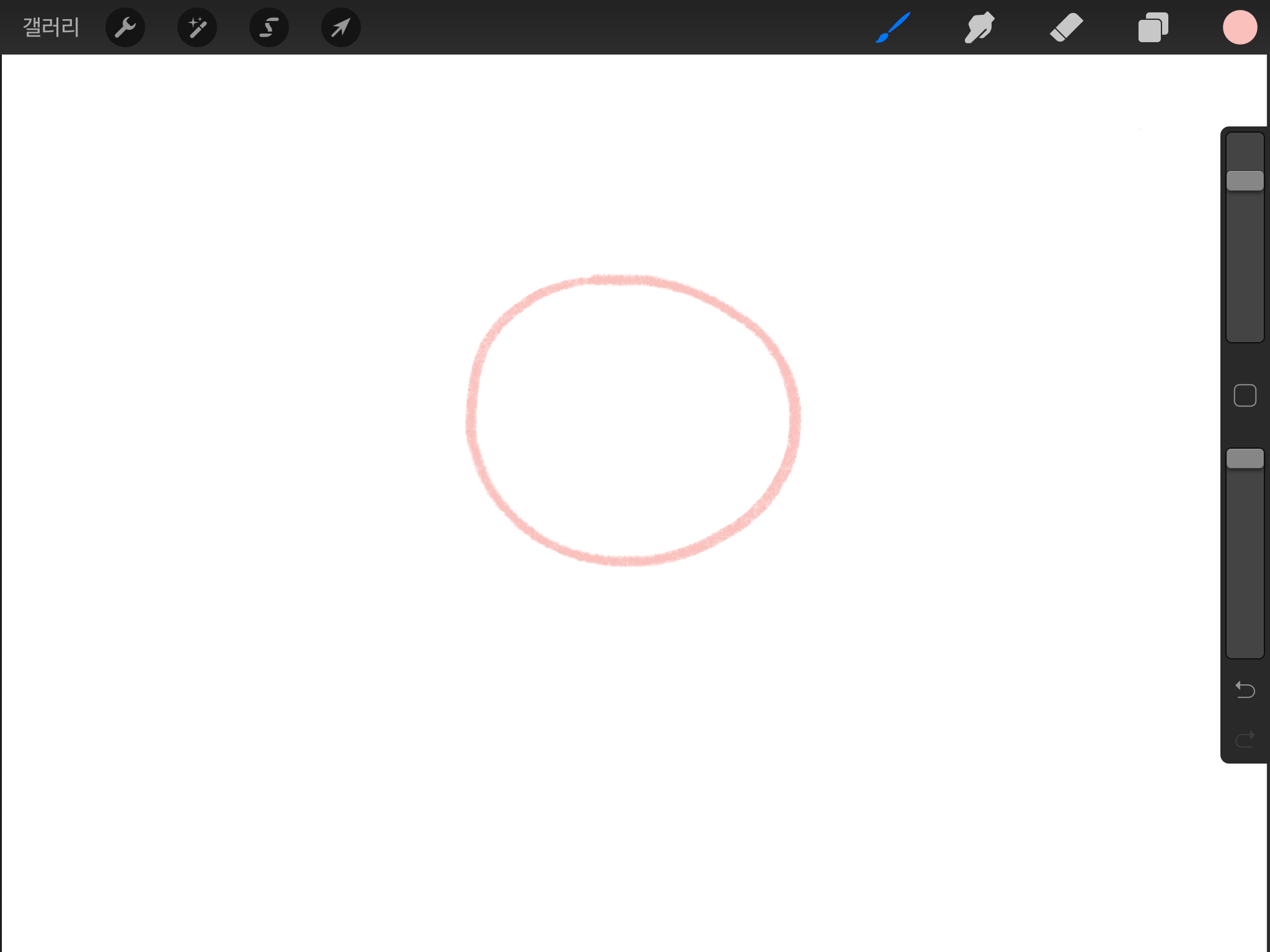 저는 [스케치] - [6B 연필] 브러시를 사용했습니다. 일반적인 동그라미를 그리게 되면 아래와 같은 모양이 됩니다.
