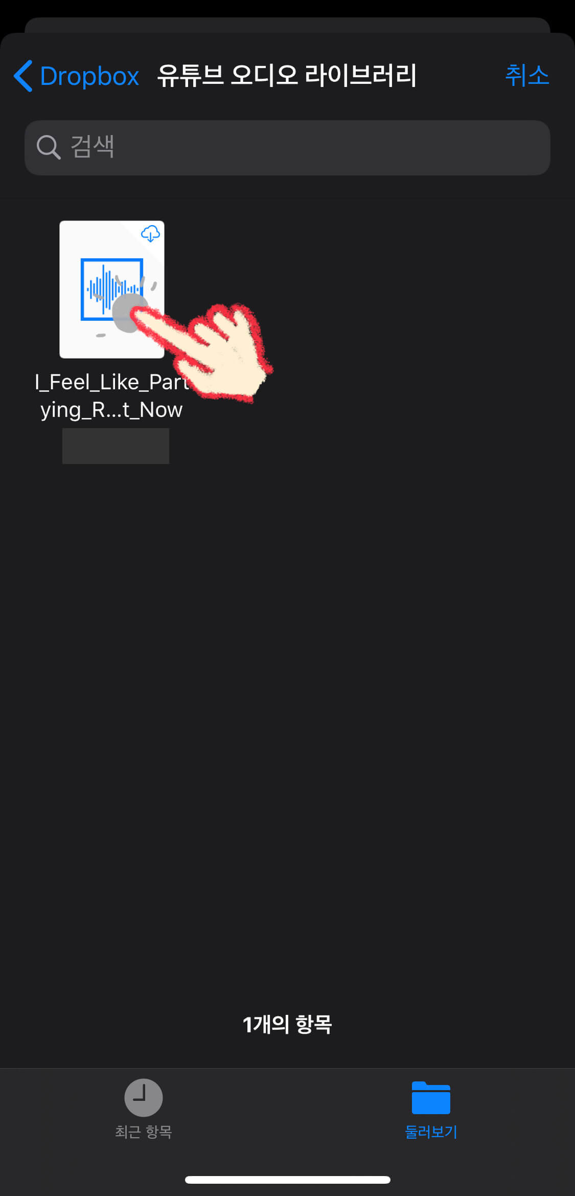 드롭박스에 업로드해놓은 음원을 찾아 선택해줍니다.